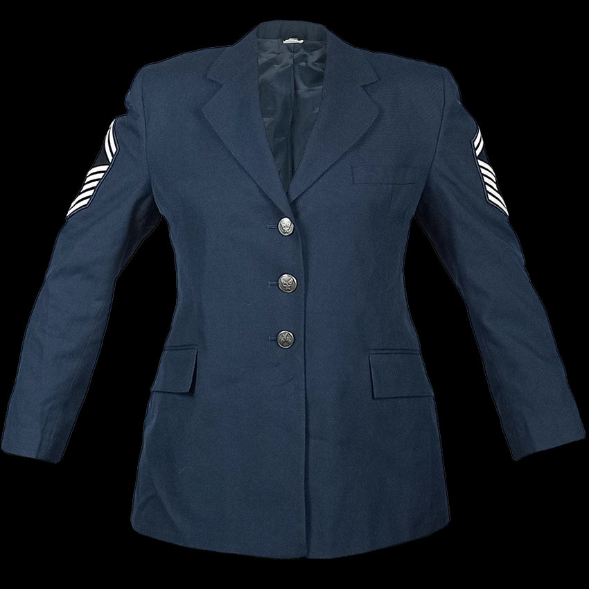 A tailored, dark blue, wool-blend US Air Force jacket for women. Featuring silver-tone buttons and a notch lapel, sharp as.