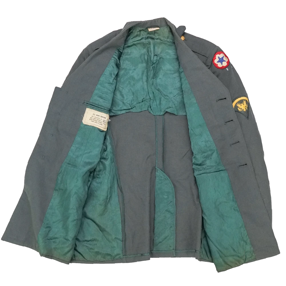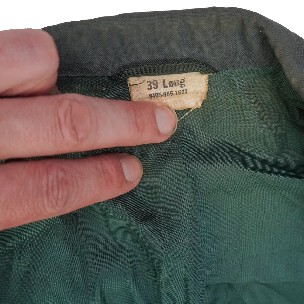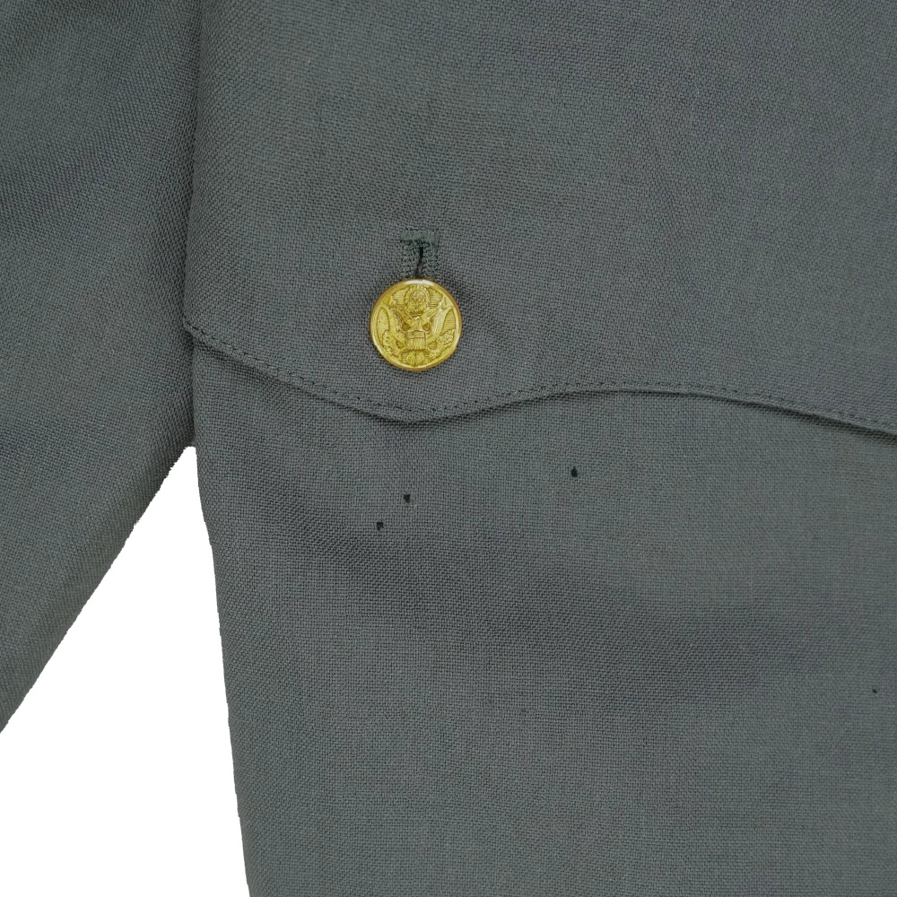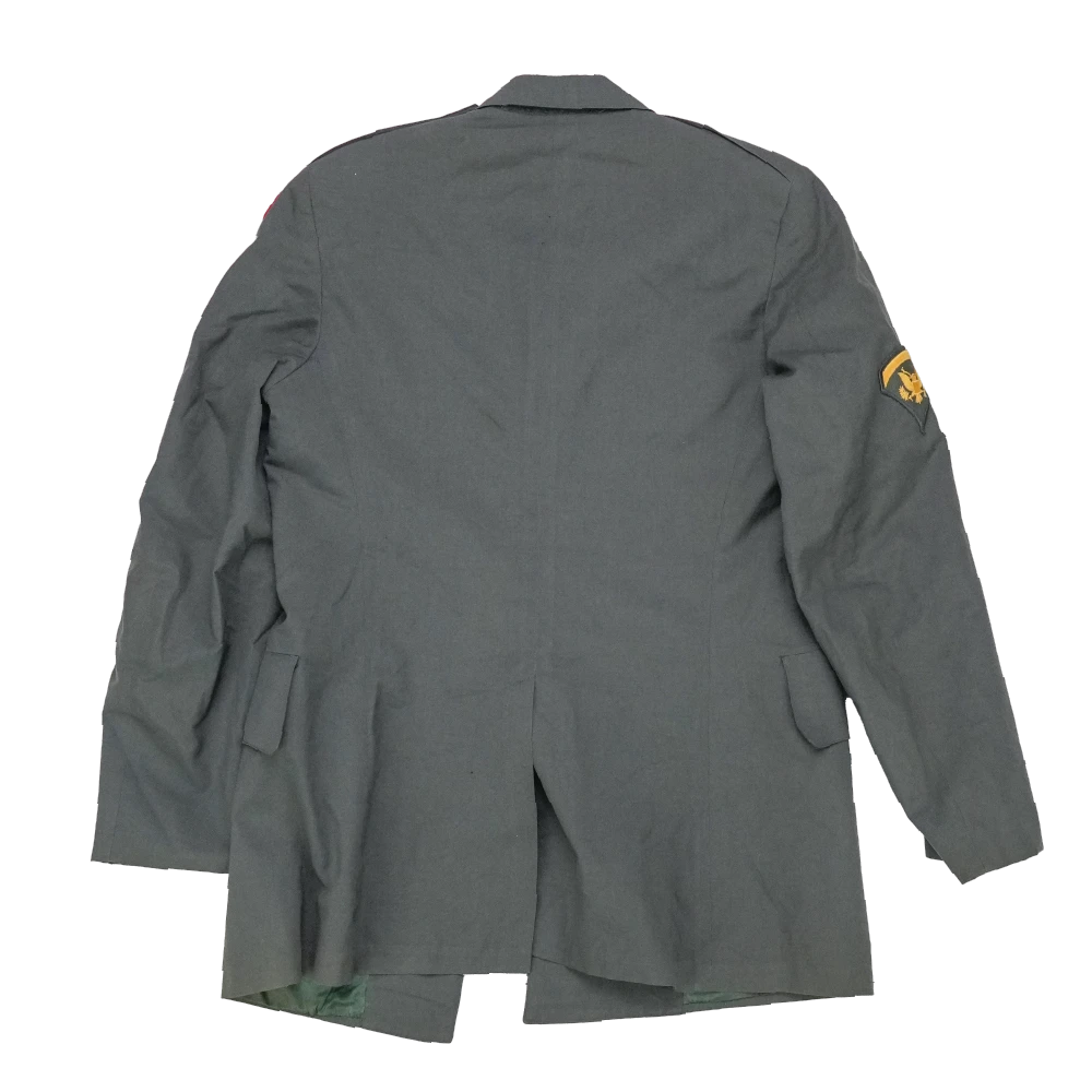 US Army Class A service dress jacket in medium long sizing. This is a formal military dress jacket with a structured service dress cut.