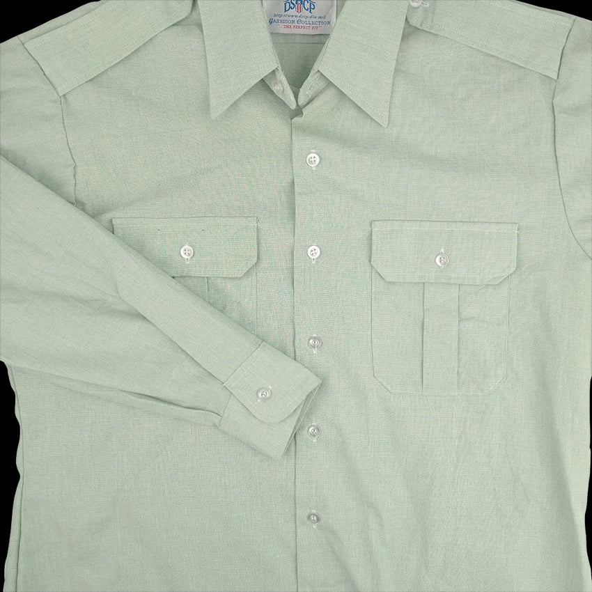 These shirts are from the Defense Supply Center Philadelphia (DSCP) and are part of the Garrison Collection. This style of long sleeve shirt was part of the US Army dress uniform between 1954 and 2015. It's known as the class 'A' dress shirt.