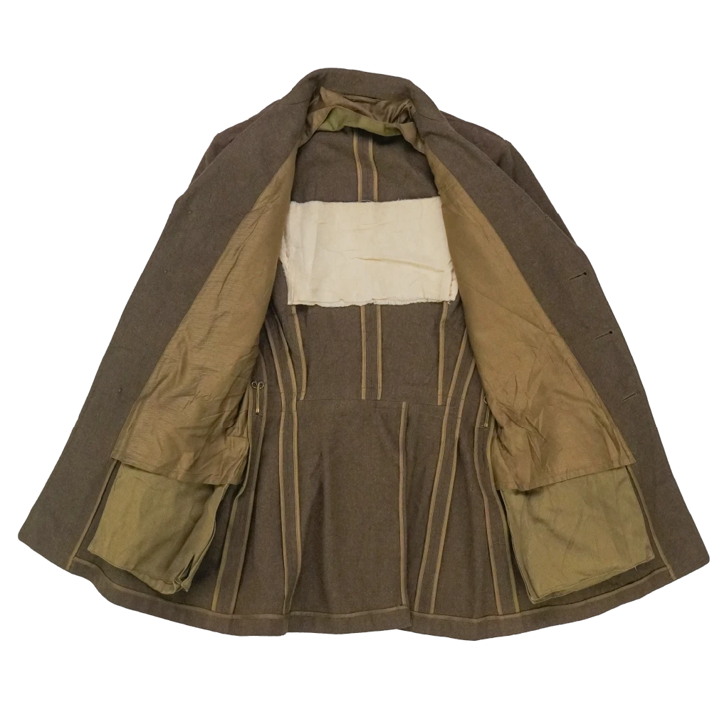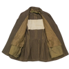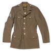 US Army WW2 Class A service dress jacket in standard tailored construction. Features a structured outer with front button closure and internal lining typical of service dress garments.