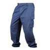 They feature belt loops and cargo-style leg pockets, prioritising durability and extended wear over civilian fashion use.