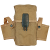 Time for some desert M16 action. Designed to hold three 30 round M16 magazines, with two side pockets for grenades, styled after the US (some retain their Made in Korea tags). Attaches with two standard ALICE slide-lock keepers or nylon strap with eyelet on back.
