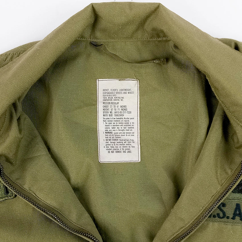 US Army flyer's jacket with patches: Special Operations Command (SOCOM), Thunderbird 45th Infantry Div & Master Aviator. DLA 1986 date. Very tidy condition.