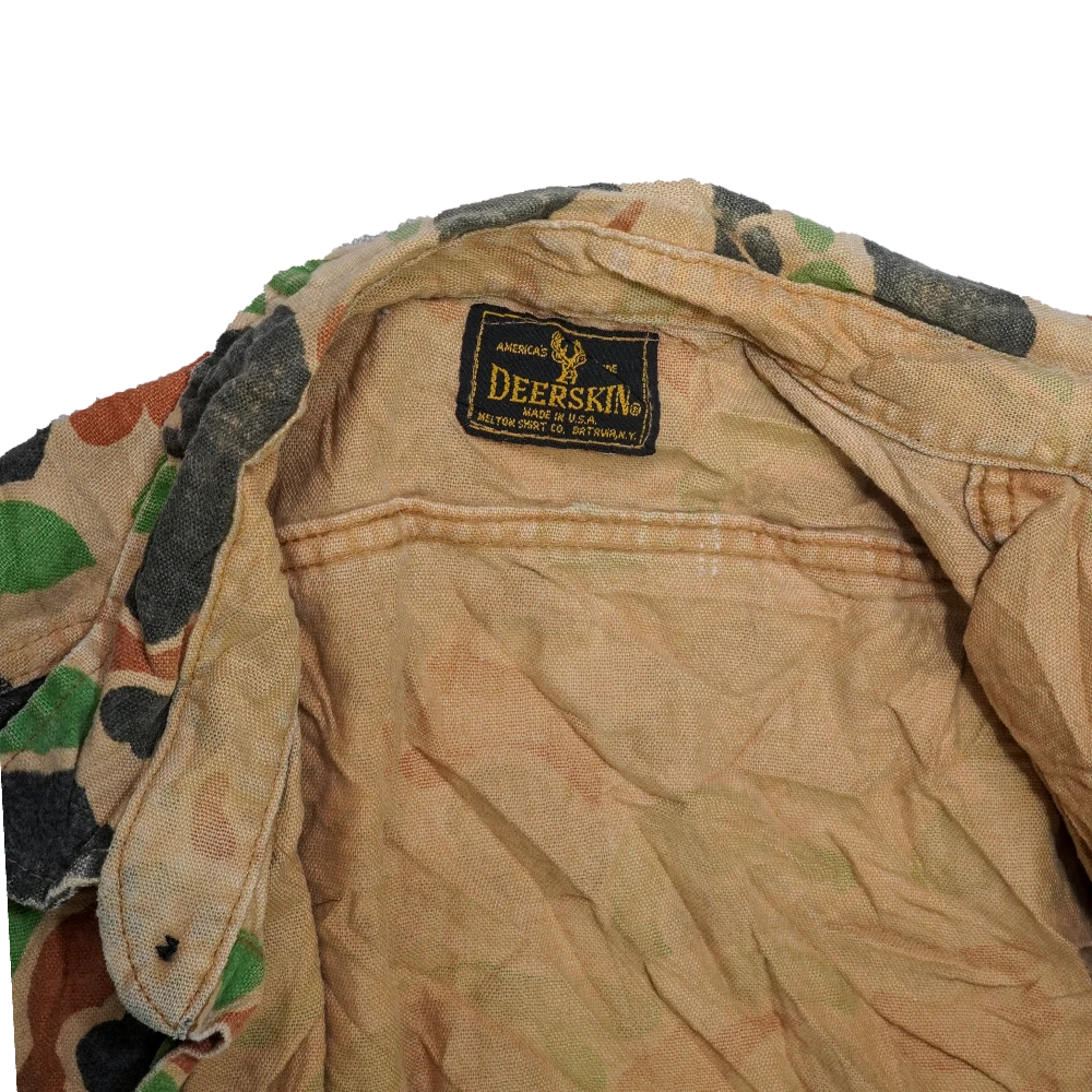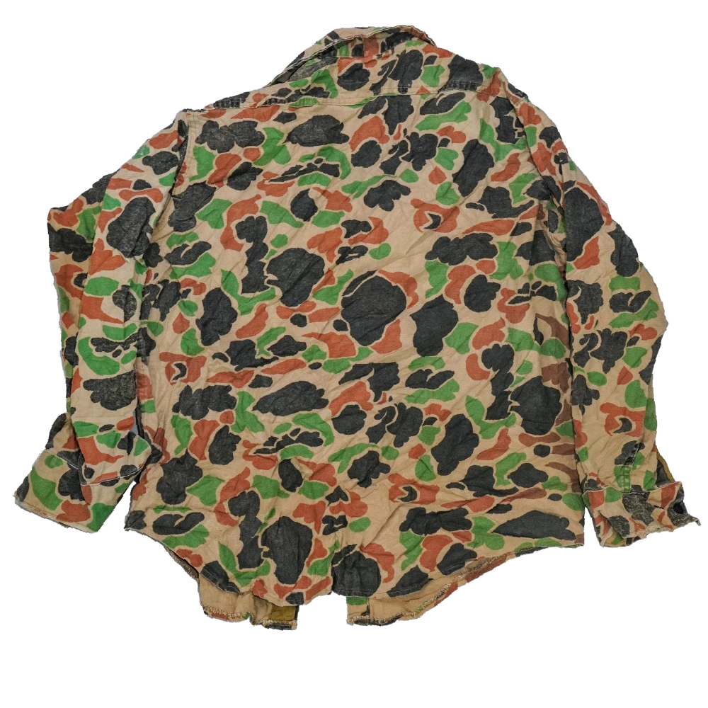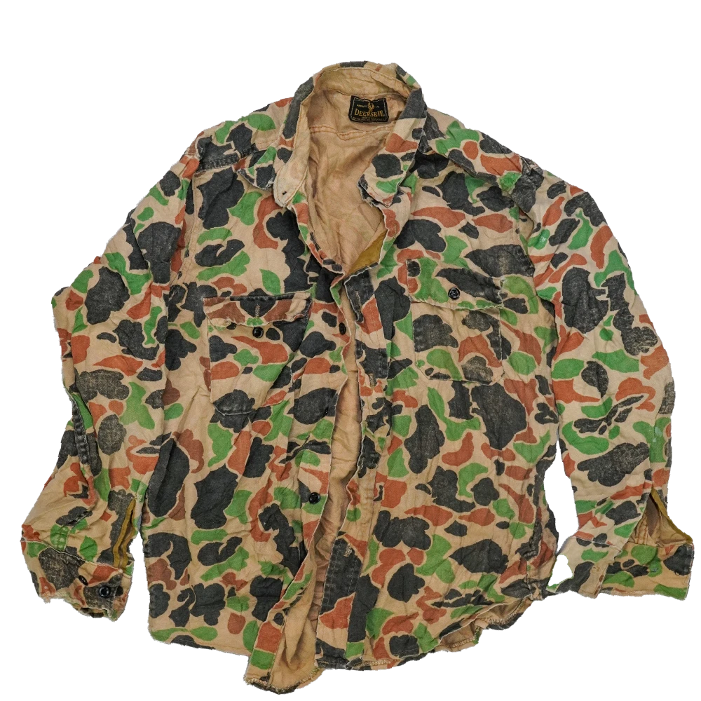 US-made camouflage shirt in a duck hunter pattern. Features a standard button front with chest pocket and long sleeves.