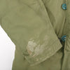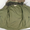 Non-shiny exterior olive drab fabric with natural fur. Vietnam War era contract, with DSA reading 1972. The notable marks to left chest and arm appear to be adhesive based. A very dense and warm jacket.