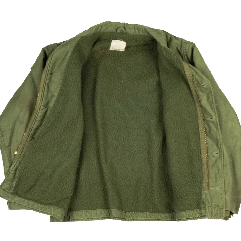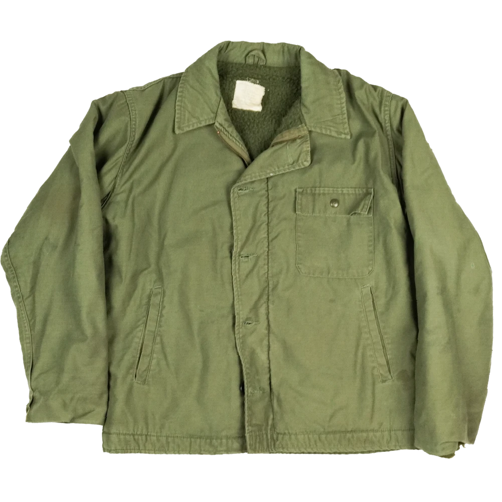 This is a US Navy A-2 deck jacket in a large size. It is a heavy outer jacket with a robust construction typical of the A-2 pattern.