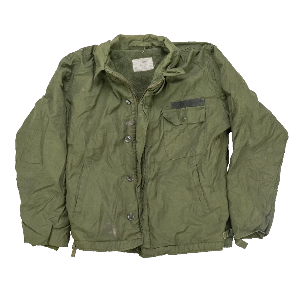 US Navy A-2 Deck Jacket in Large. Heavyweight deck jacket with classic A-2 styling and a durable outer shell.