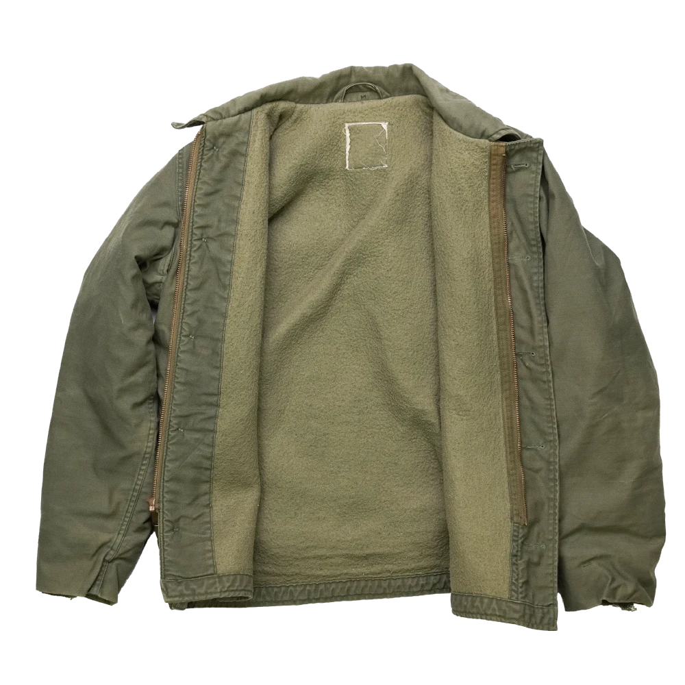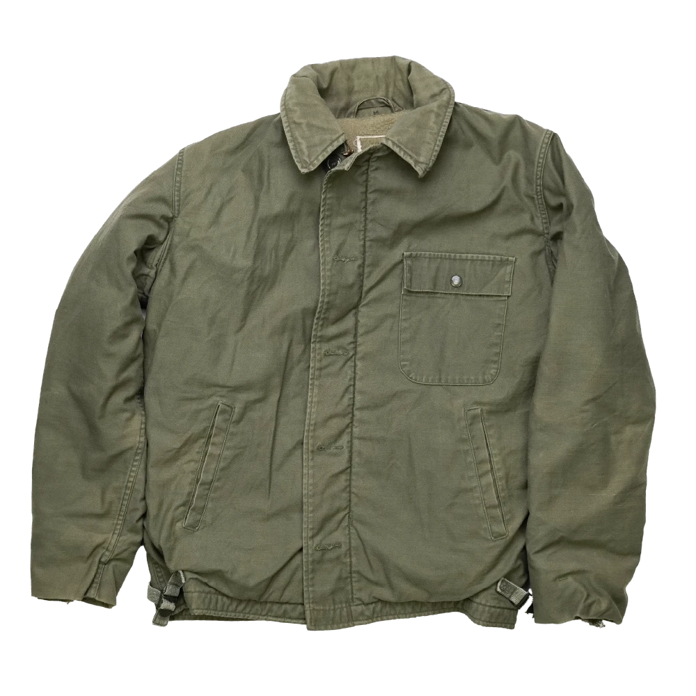 US Navy A-2 deck jacket in surplus condition. This is a military outerwear jacket with a classic deck jacket form.