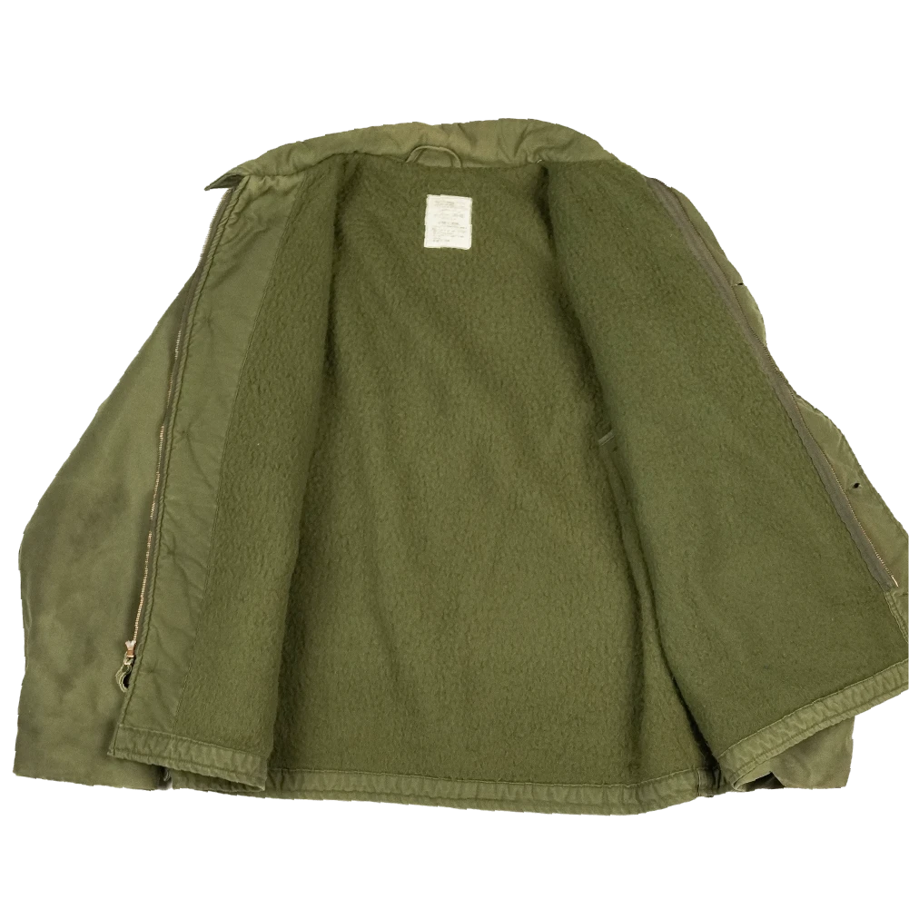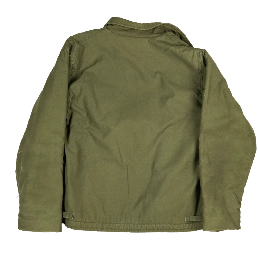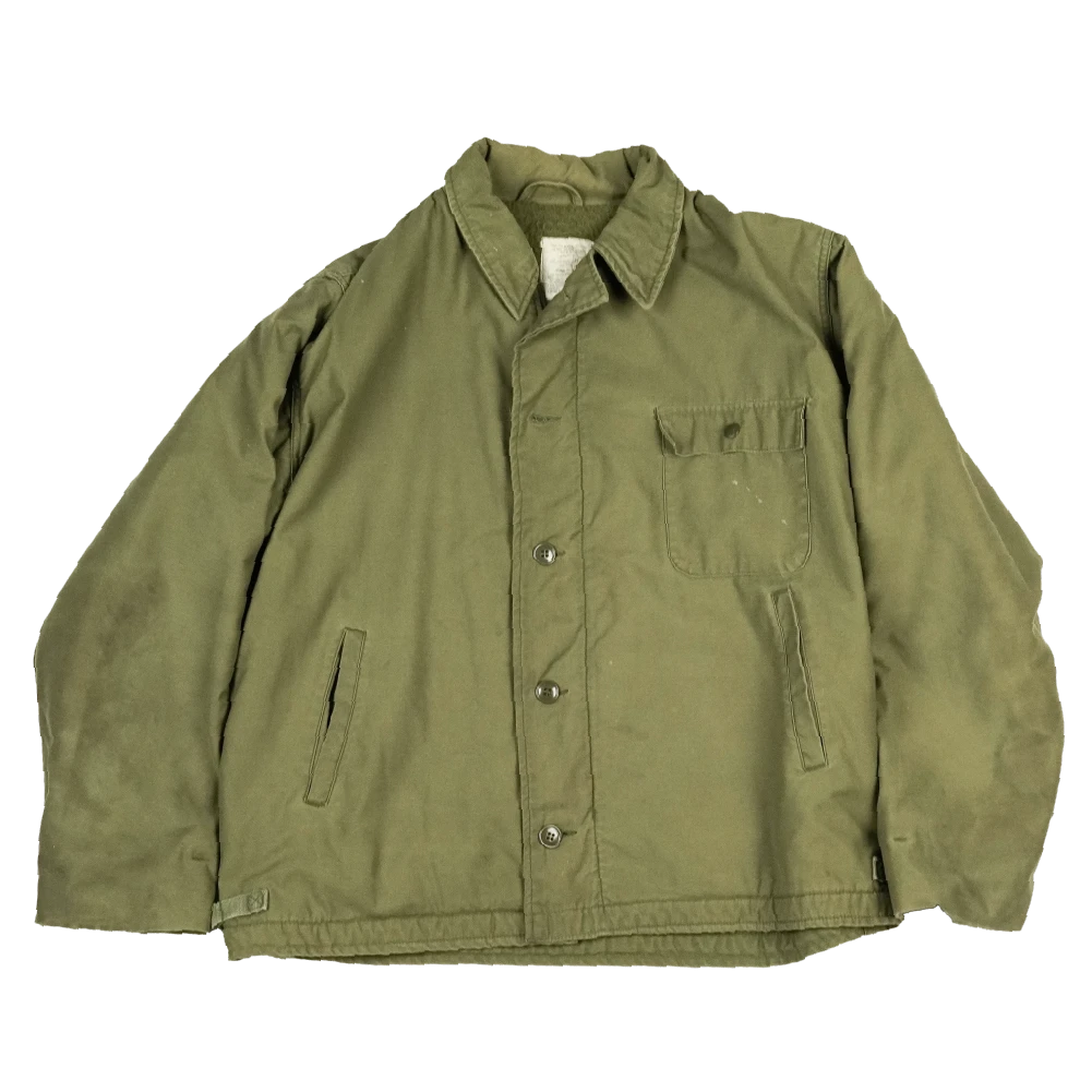 US Navy A-2 deck jacket in surplus condition. Heavy jacket with a plain exterior and standard deck jacket construction from the mid-1980s.