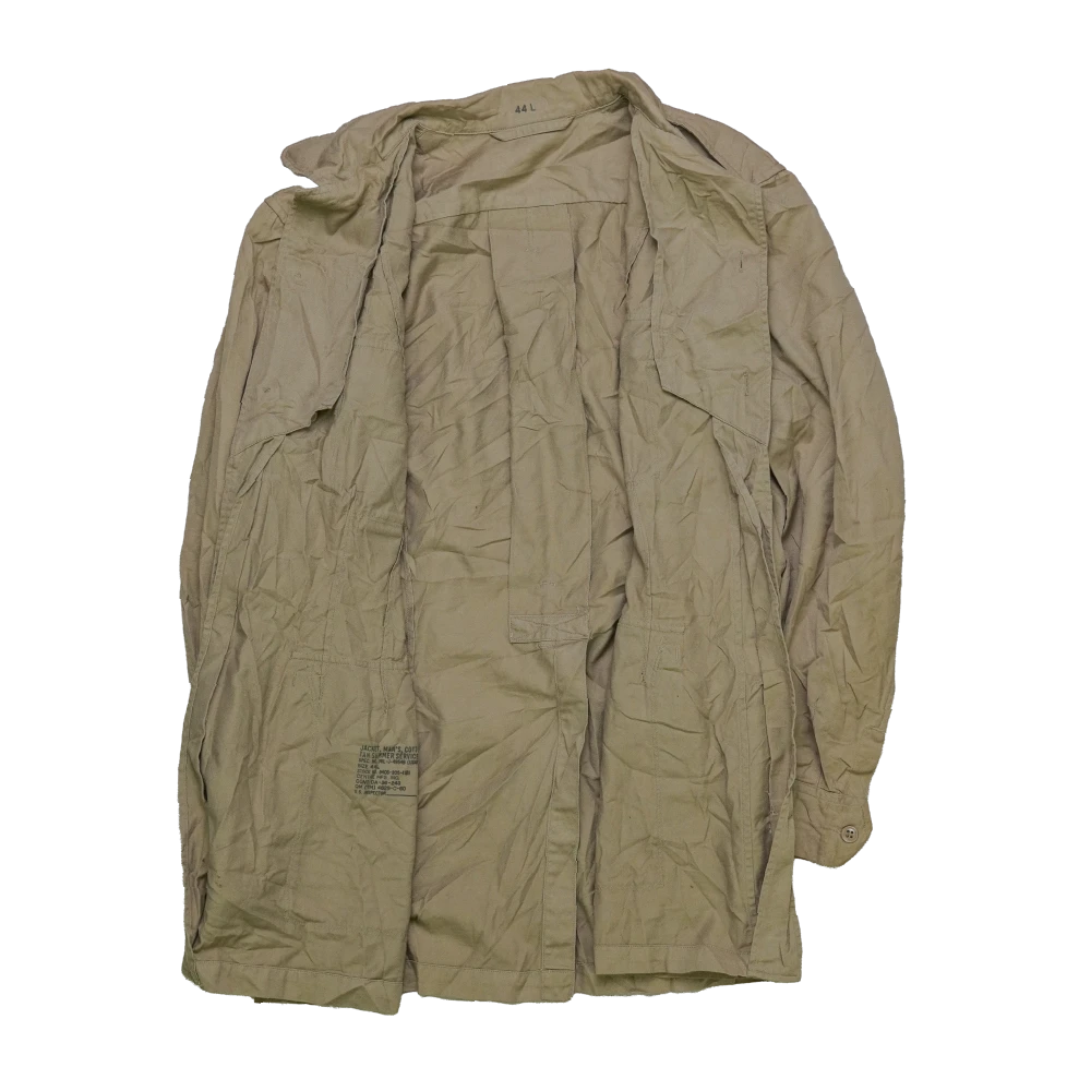 Authentic USAF cotton tan summer service jacket featuring a lightweight tailored uniform cut. U.S. Air Force issue garment with NATO stock number 8405-205-1191.
