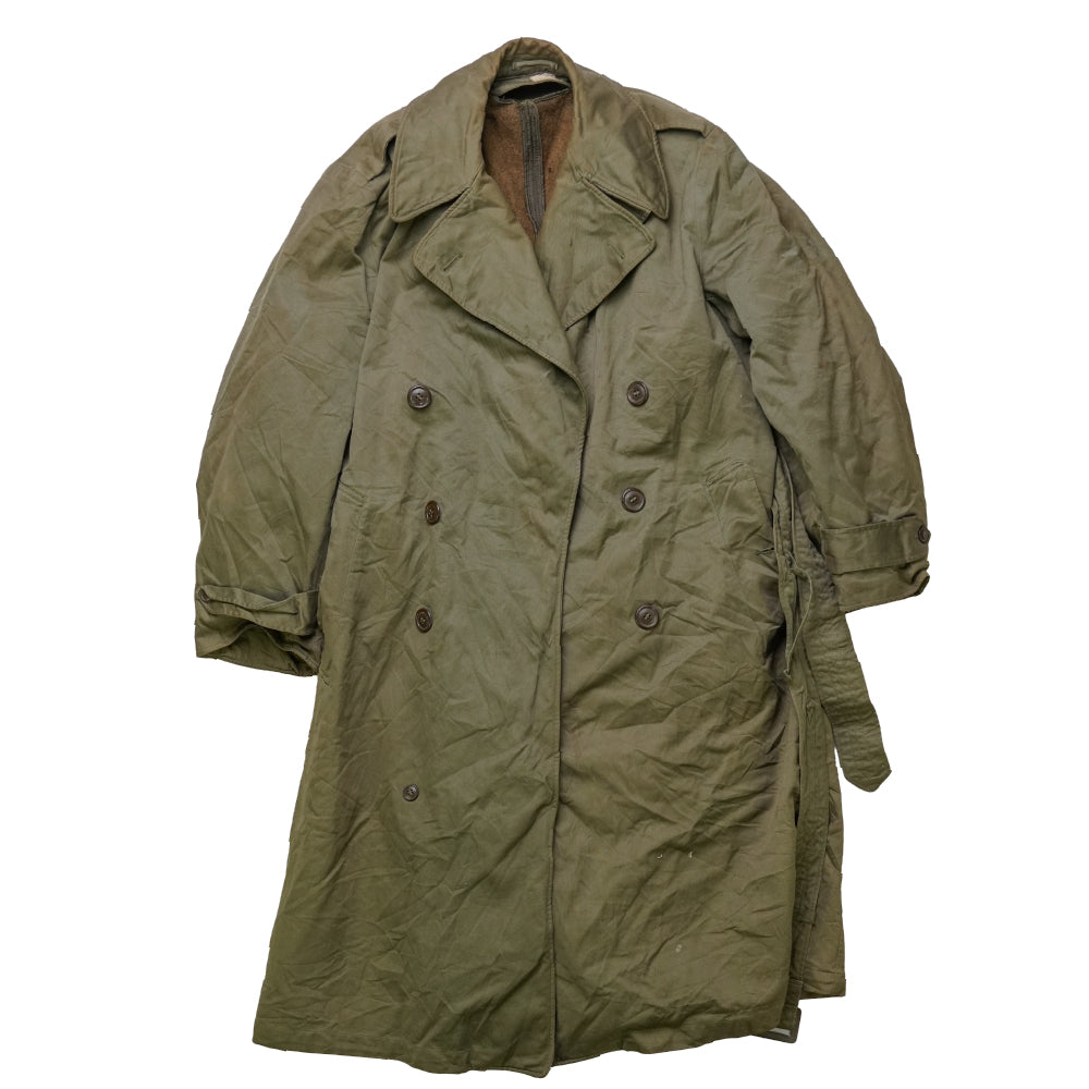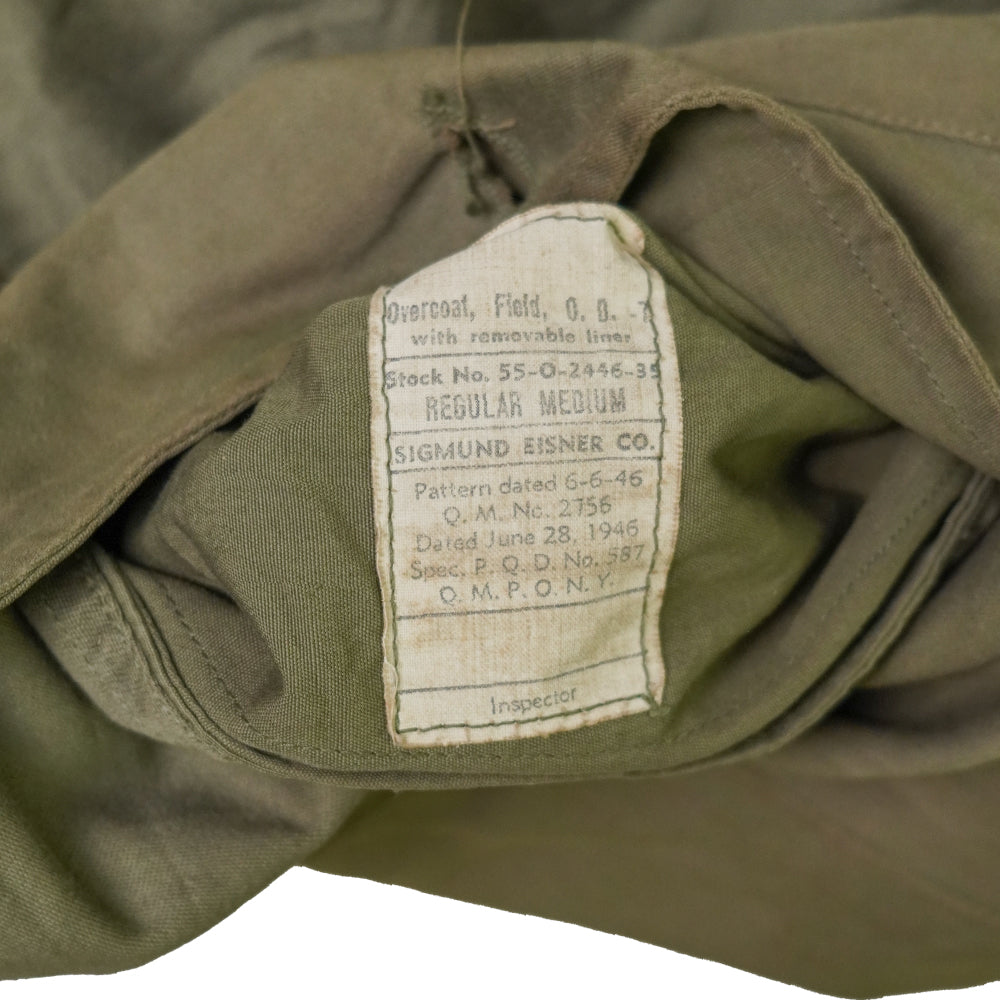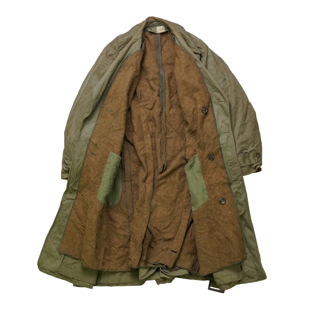 USGI 1940s OD7 Field Overcoat. Heavy wool outer with full wool liner and button front closure. Manufactured in 1946.