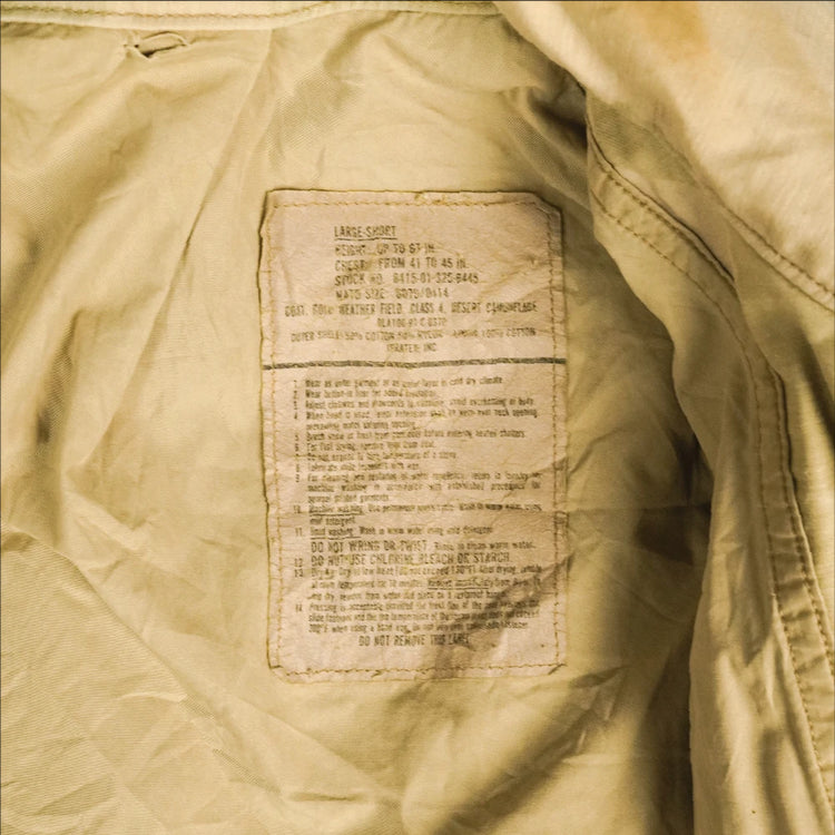 USGI M65 field jacket in 3 colour desert camouflage. Manufacture date 1991.
