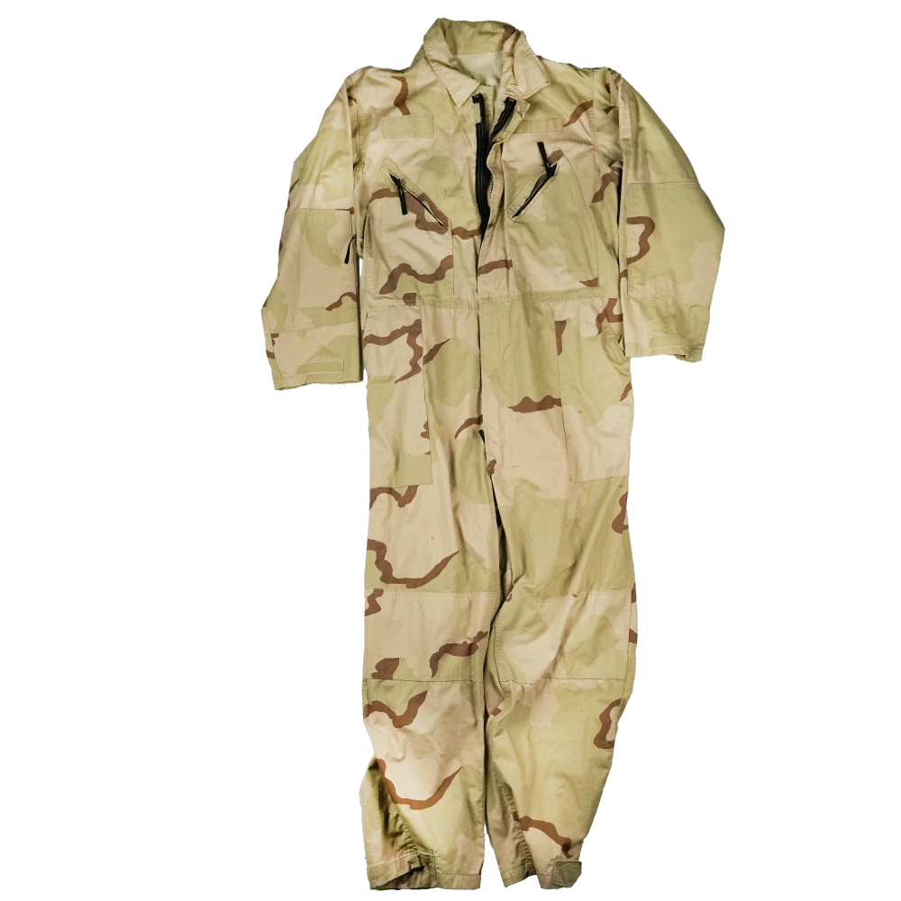 USGI cold weather mechanics coveralls in 3 Colour Desert camouflage. One-piece coverall construction with integrated closure and full-body coverage.