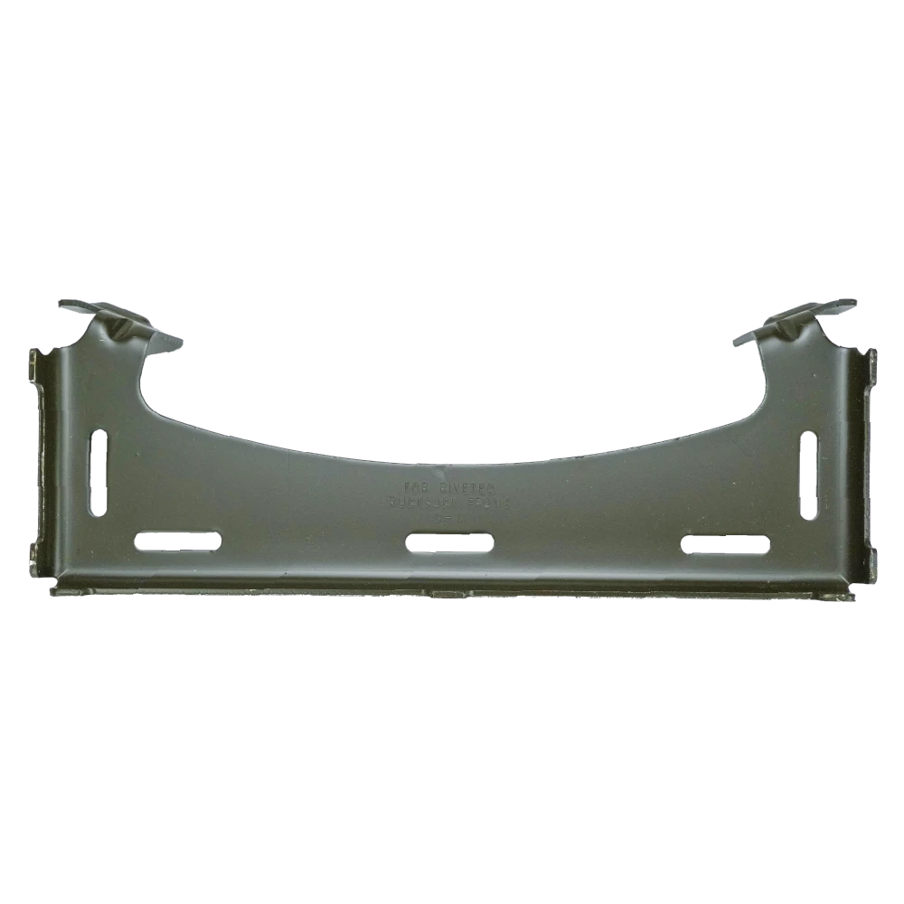 USGI ALICE pack frame cargo shelf in olive drab. Metal construction designed to attach to an ALICE pack frame to support additional loads.