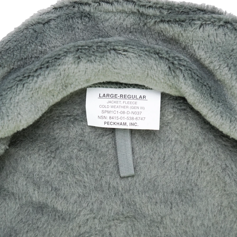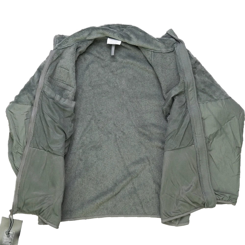 USGI cold weather fleece jacket in Large Regular sizing. Fleece construction with a full-zip front and long sleeves.