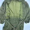 The USGI Cold Weather Mechanic's Coveralls are a surplus one-piece garment with a synthetic cold weather lining, designed with a full zip and dome closure running from neck to crotch. This example features elasticated cuffs on both the arms and legs and is sized Medium.