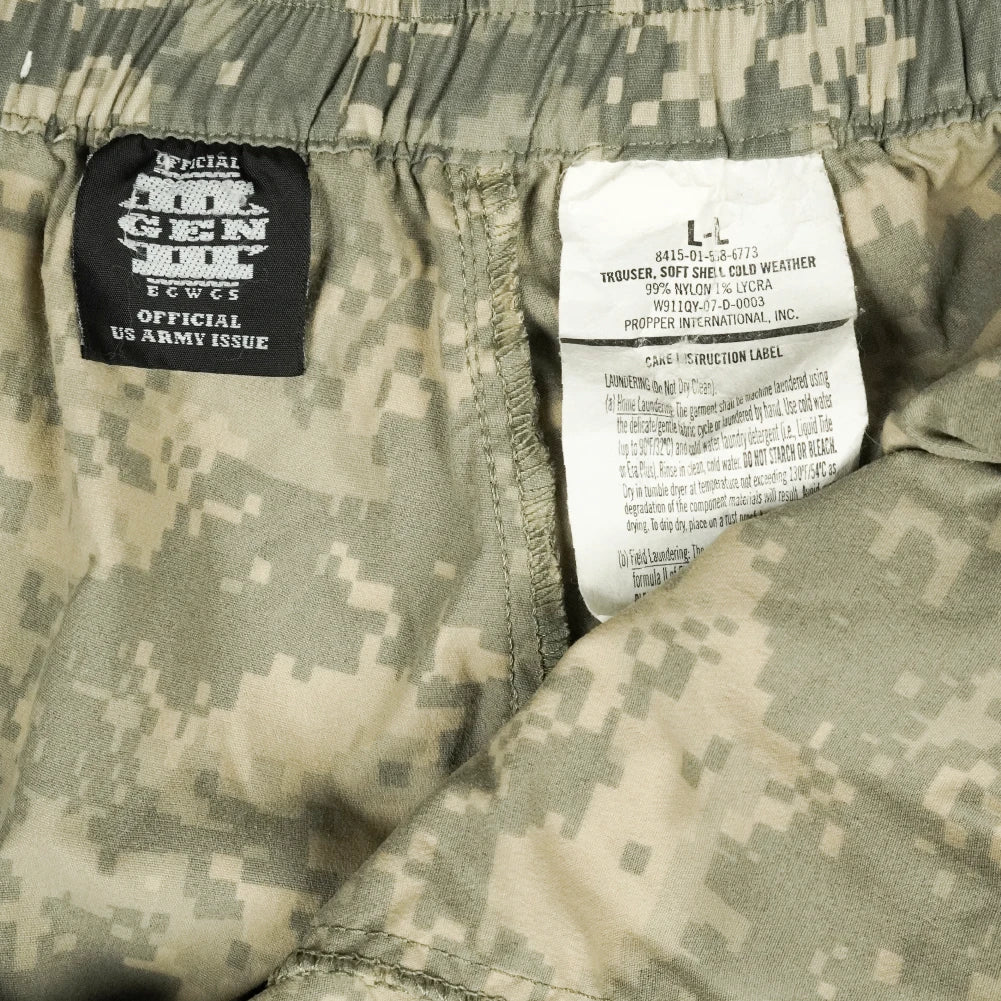 USGI ECWCS GEN III soft shell trousers in surplus condition. Soft shell construction with a water resistant fabric. Manufacture date 2007.