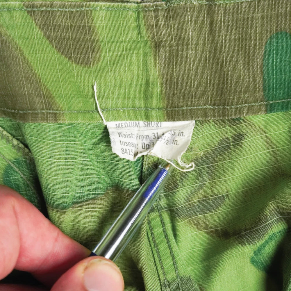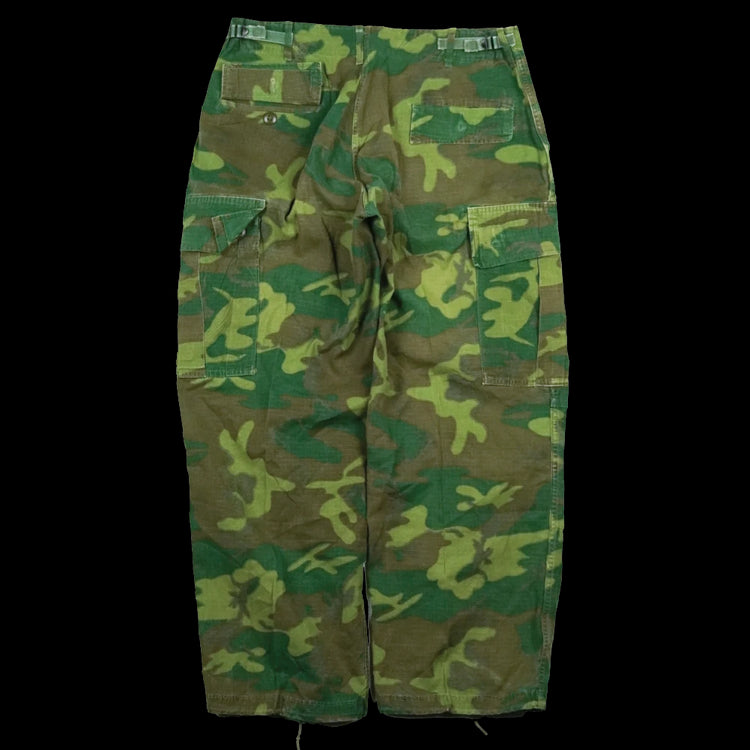 The 6th pattern was the final iteration of the jungle fatigue trousers. This version was produced in ERDL camouflage and features a zipper fly rather than buttons. It was worn primarily by the USMC during the Vietnam War, with additional use by New Zealand and Australian SAS forces in South East Asia.