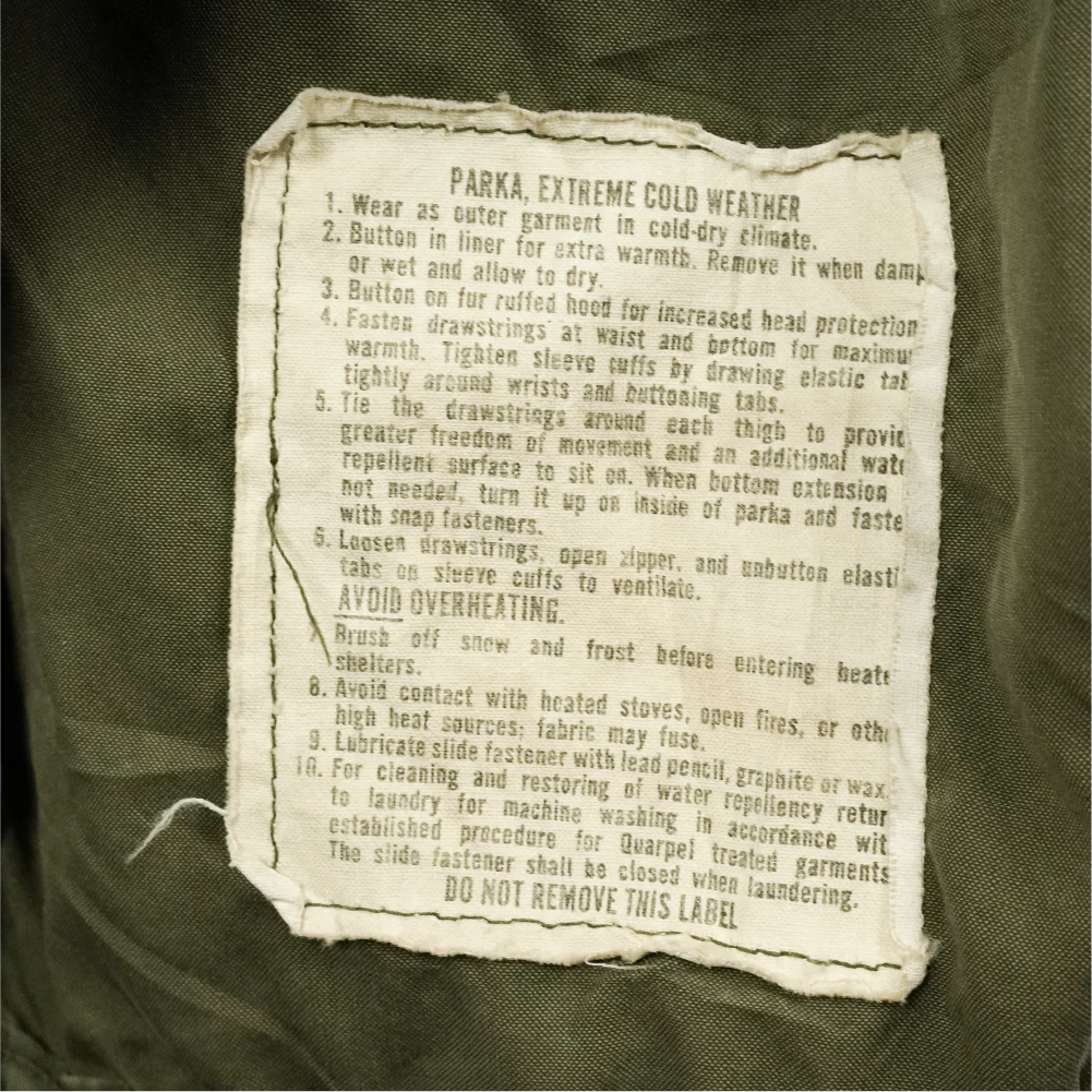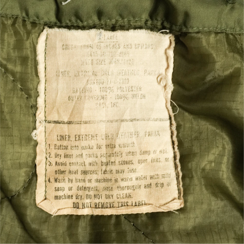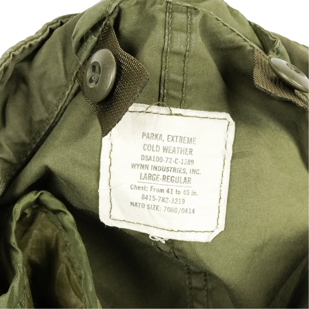 USGI extreme cold weather fishtail parka supplied with a liner. Manufacture date 1972.