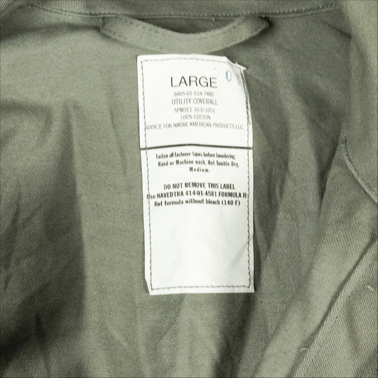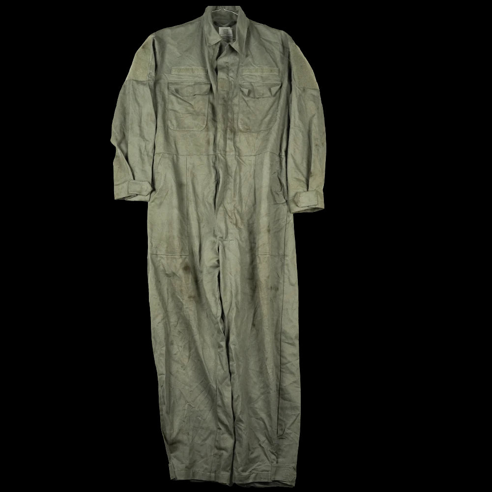 USGI utility coveralls in foliage green. One-piece coverall construction with a full-length front closure. Manufacture date 2010.