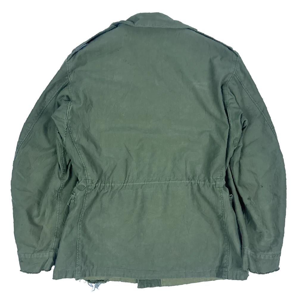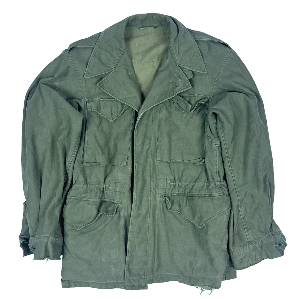 USGI M-1943 Field Jacket in size 34R. This is the original four-pocket US field jacket design. It has lined hip pockets and does not have attachment points for a liner.