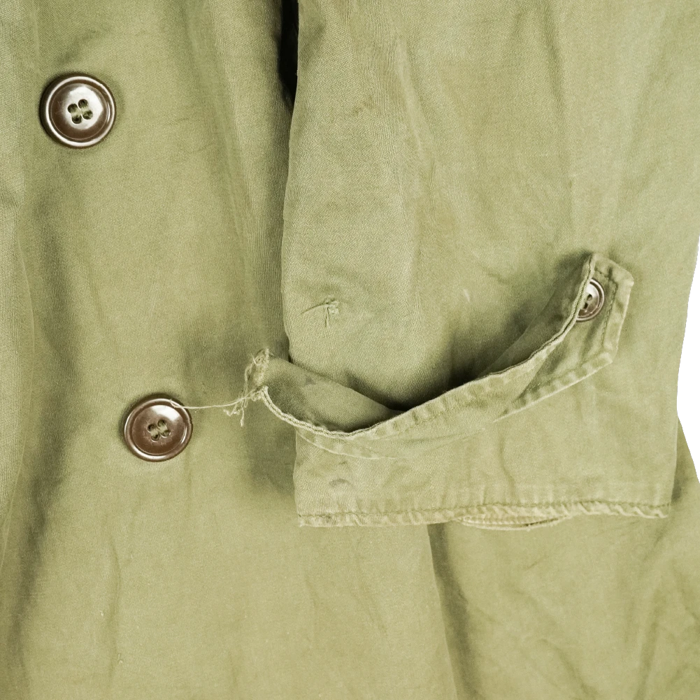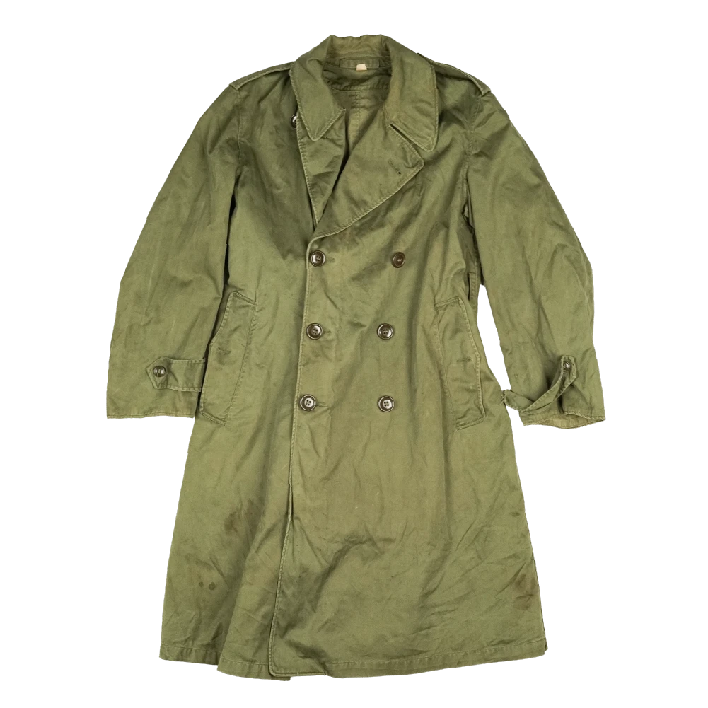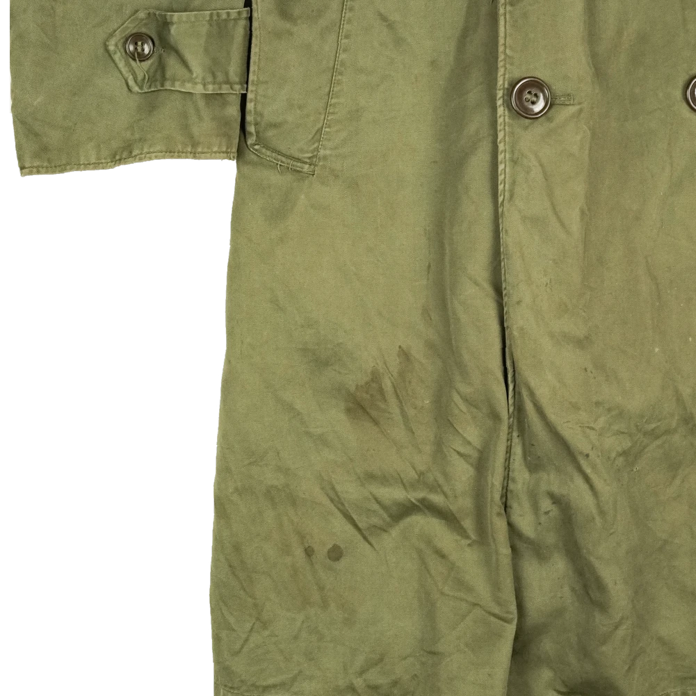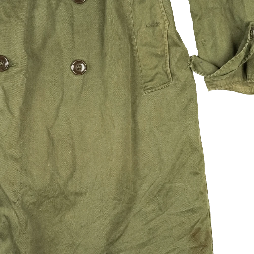 USGI M-1950 overcoat in surplus condition. This is a heavy overcoat design with a long cut. The belt and liner are not included.