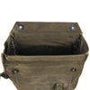 This bag has a rugged canvas construction, typical of military gear from the '60s and 70's. The sides are reinforced with a protective, yet flexible material. Securing the main compartment is a pair of snap domes. On the opposite end is a small pocket and pouch, also with snap dome fastening. These additional compartments would have been used to carry a waterproof bag and nerve agent antidotes (NAAK). While these bags will fit many types of gas masks, they'll also prove useful as a daily messenger bag, or simply as a cool display piece of military history.