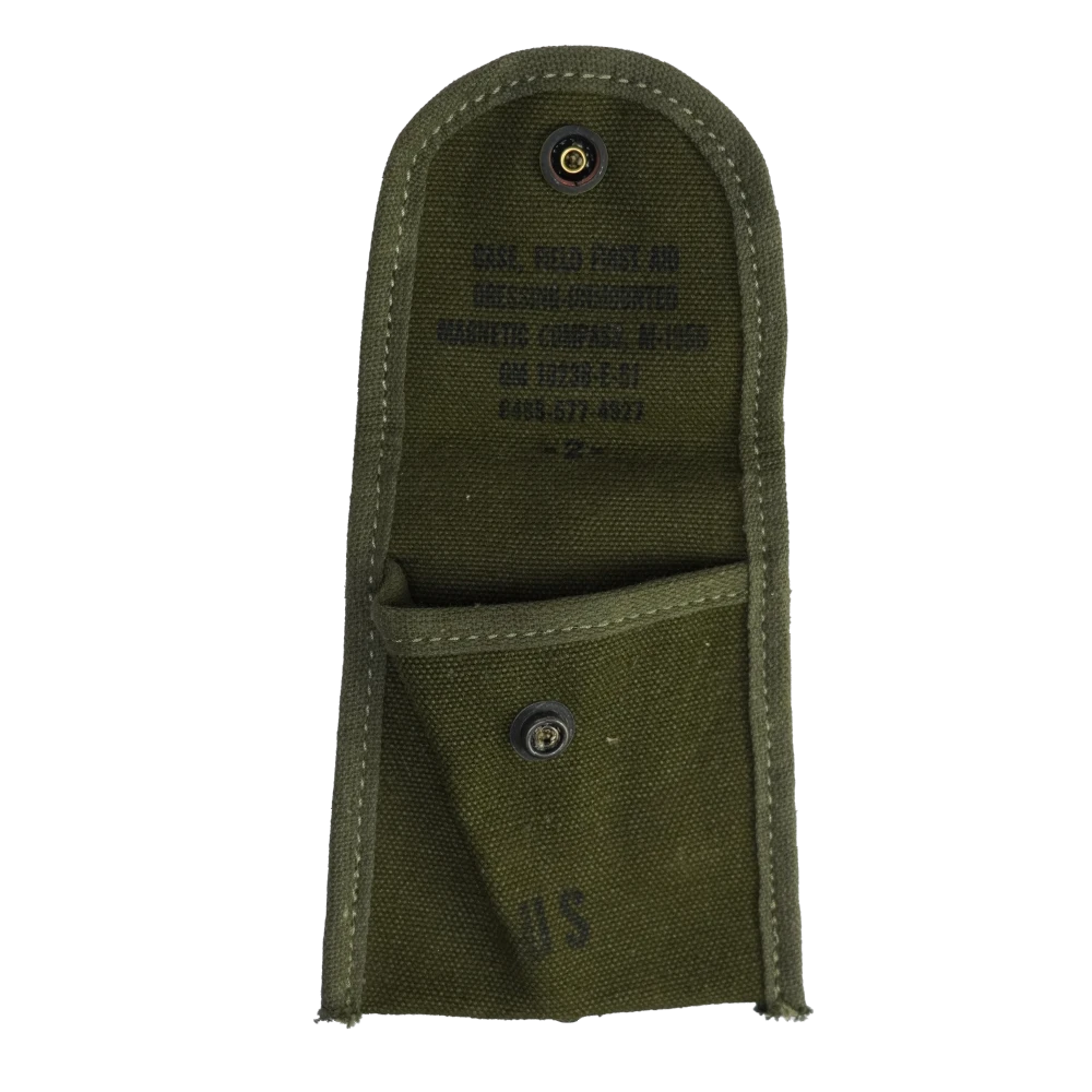USGI M56 Compass/First Aid Pouch in olive drab nylon construction. Compact design with secure flap closure for small field items.