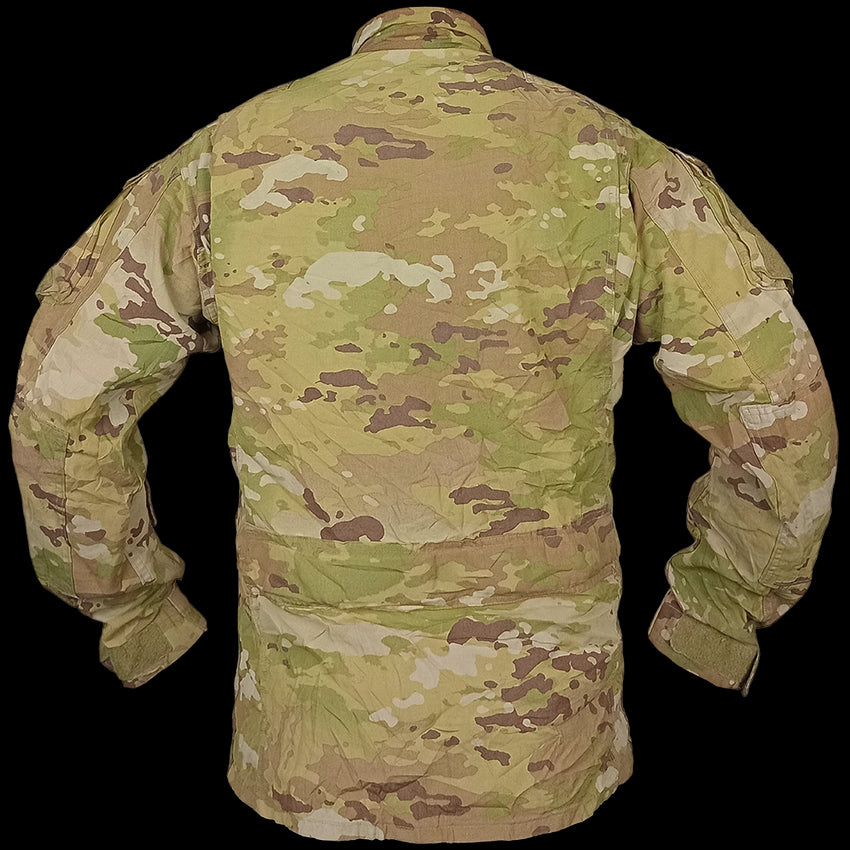 The USGI OCP (''Multicam'' but not actually) aircrew combat Shirt is a protective combat shirt designed for aircrew and aviation personnel. It features a lightweight design for comfort under gear and durable construction with reinforced elbows and pockets. And an aircrew uniform wouldn't be complete without a whole lot of pockets, would it? Dual shoulder pockets, pen pockets to the sleeves and zipped chest pockets will keep all your fly-boy things safe. Interestingly, the nature of the fabric composition tends to appear a bit more yellow than other OCP uniforms. Optimised for flight operations, it offers superior protection, mobility, and compatibility with aircrew gear. Pretty wicked for tinkering around in civilian life too!