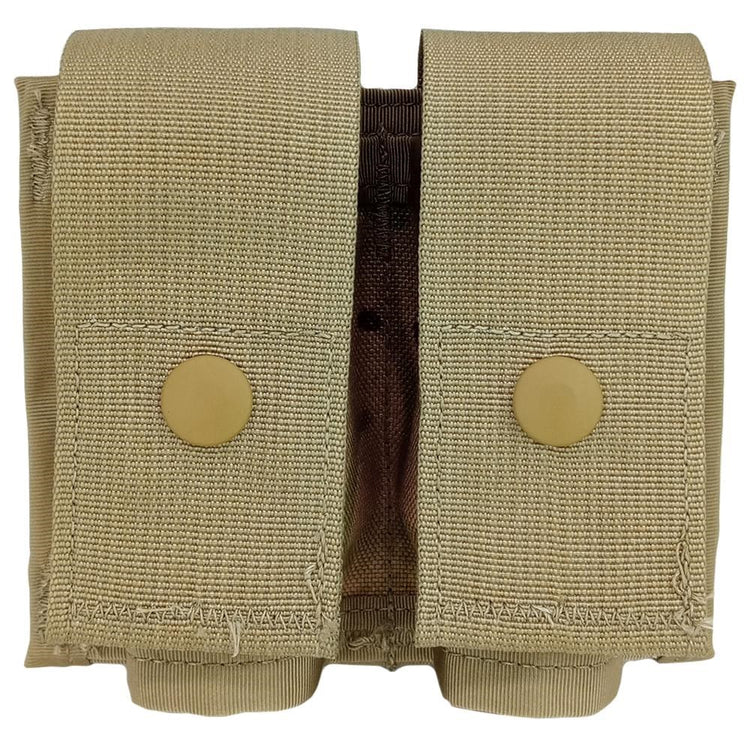A genuine US Army pouch to hold a pair of 40mm, M203 rifle grenade rounds. Designed for the MOLLE II attachment system so the pouch can be carried on combat vests, belts and other load bearing gear. The pouch features dual compartments with a snap dome cover made from durable Cordura nylon. The bottom is also open – don’t worry it won’t lose your grenade round, it is designed to drain any water from building up in the pouch. Use one (or a few) of these pouches to carry 40mm airsoft/paintball gas grenades. Or pick one up for your US military collection.