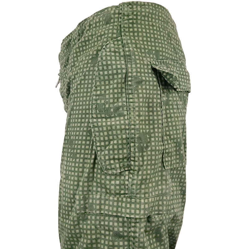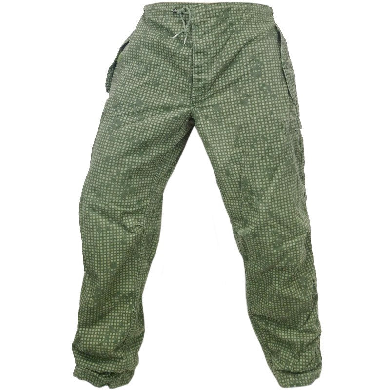 With the widespread introduction of 1970's Soviet night vision equipment, the US designed this odd looking pattern to hide their IR signature at night. The uniform set was designed to be worn over your field uniform once night falls. To accommodate this, these trousers pockets are completely open so you can access pockets on the intended bottom layer. Curiously enough, soldiers were fond of the uniform due to the extra layer to wear on cold desert nights - the 'camo' however turned out to be completely obsolete by time of issue due to more modern IR advances.