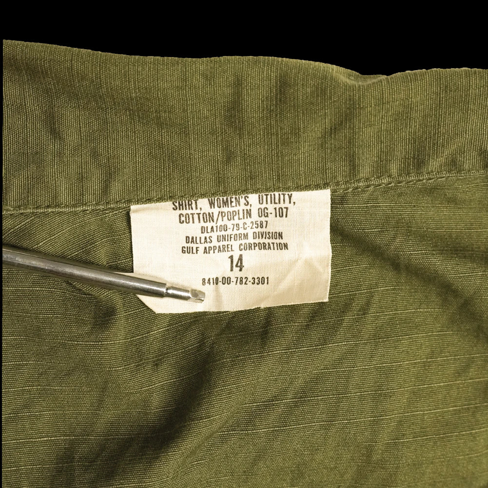USGI OG-107 women’s utility short manufactured in 1979. This is a military surplus garment with a simple utility cut consistent with the OG-107 pattern.