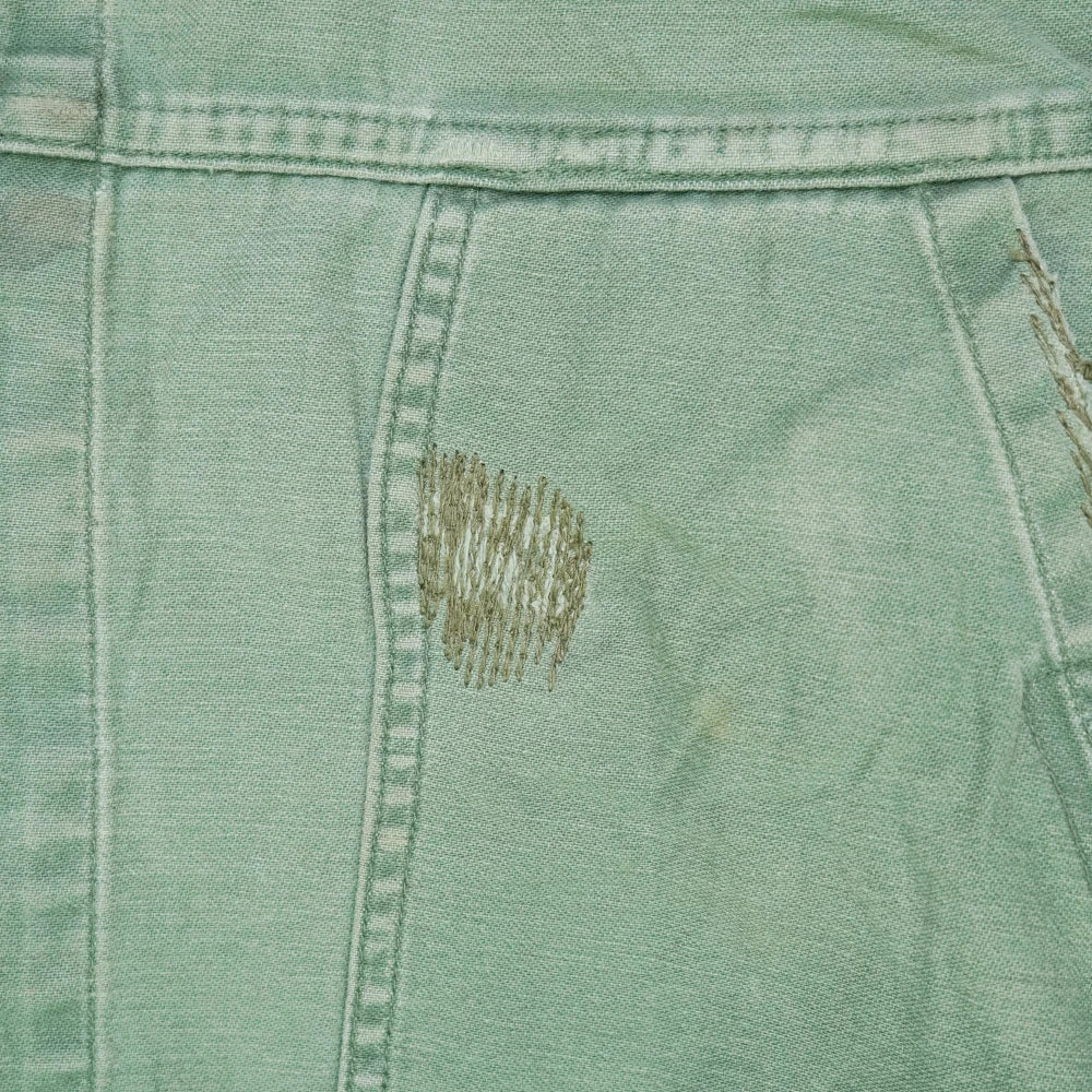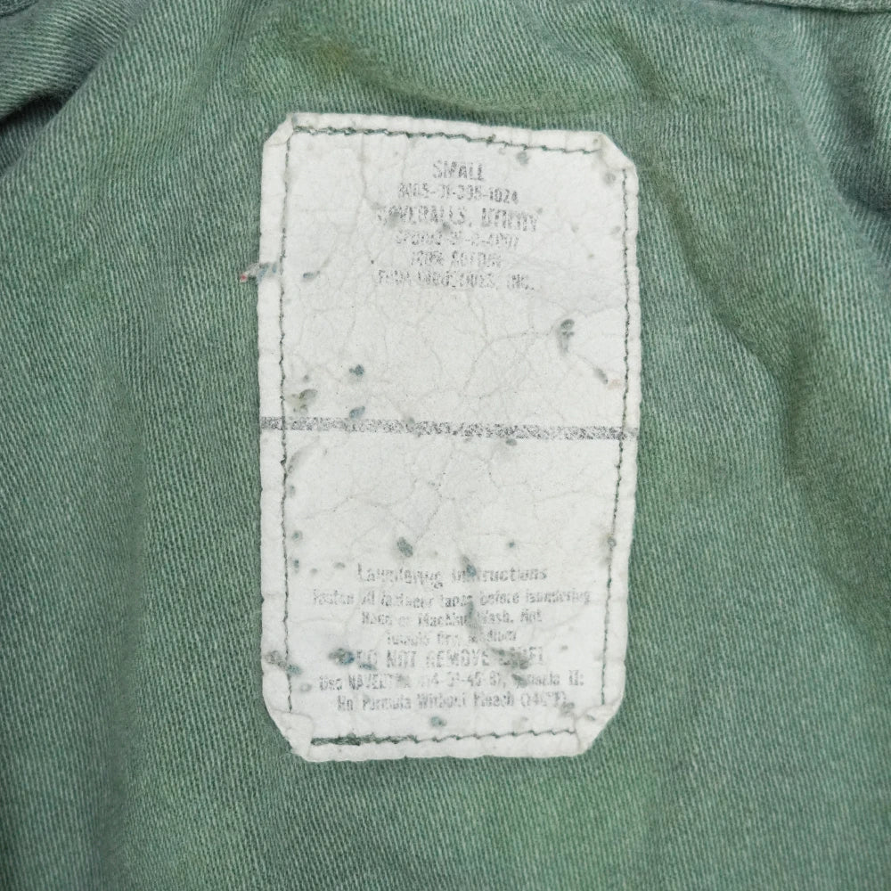 USGI olive drab utility coveralls in used/fair condition. One-piece construction with full body coverage in a plain olive drab finish.