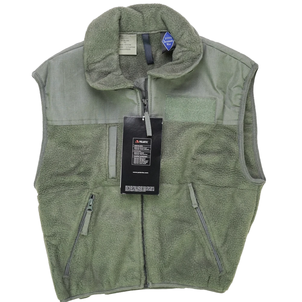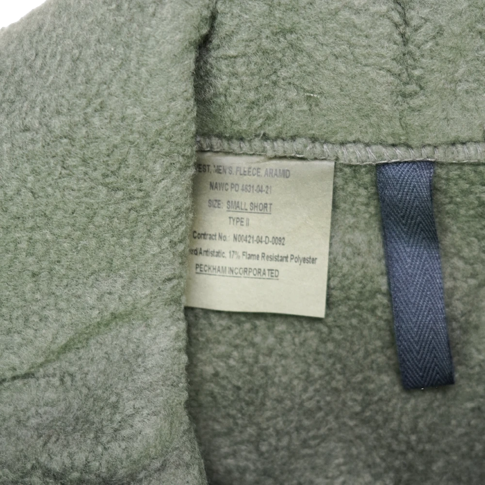 USGI Polartec fleece flyers vest in Small Short sizing. Manufactured in 2004. Lightweight fleece construction designed as a sleeveless insulating layer.