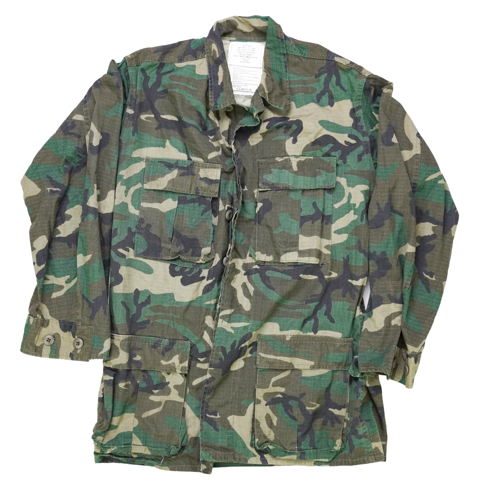 USGI RDF ERDL ripstop shirt in surplus condition. Lightweight ripstop construction with a standard button-front closure and chest storage.