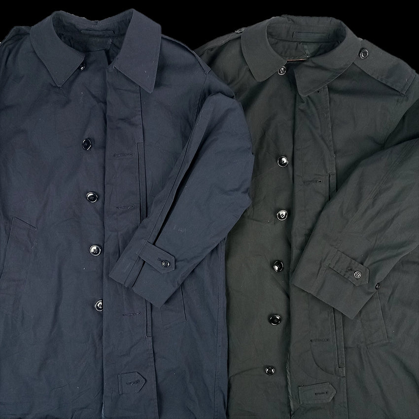 These are a picked at random mix of US Air Force dark navy blue and Army black, used over dress uniforms. With a removable zip in liner, accommodating multiple seasons with one coat is a breeze.