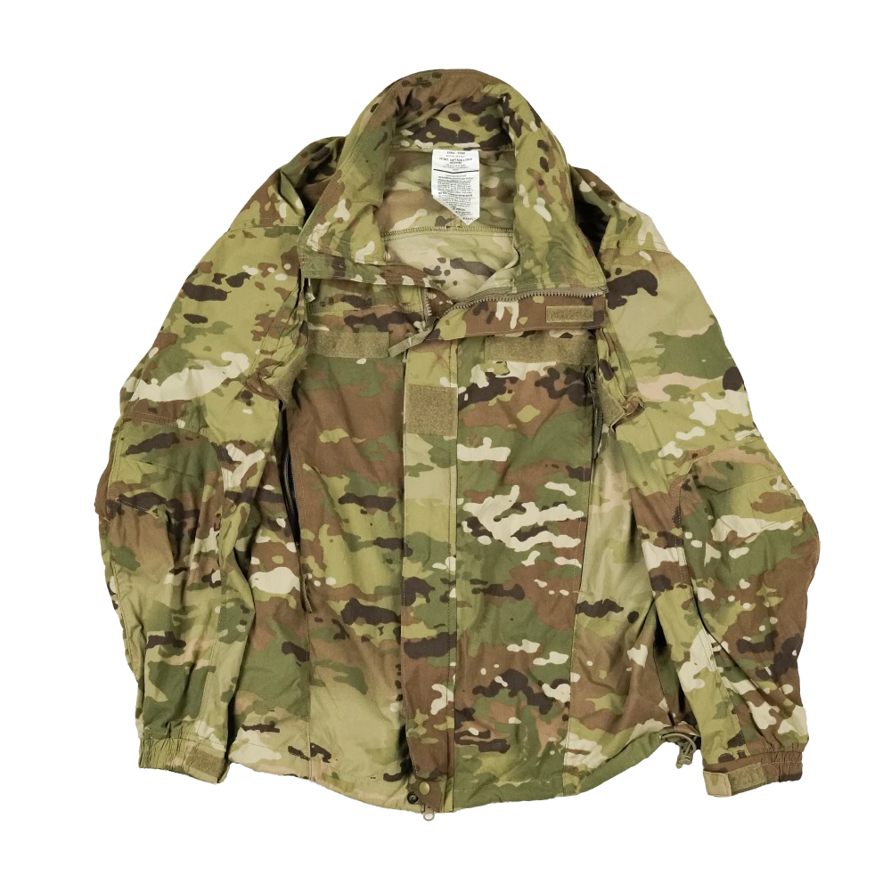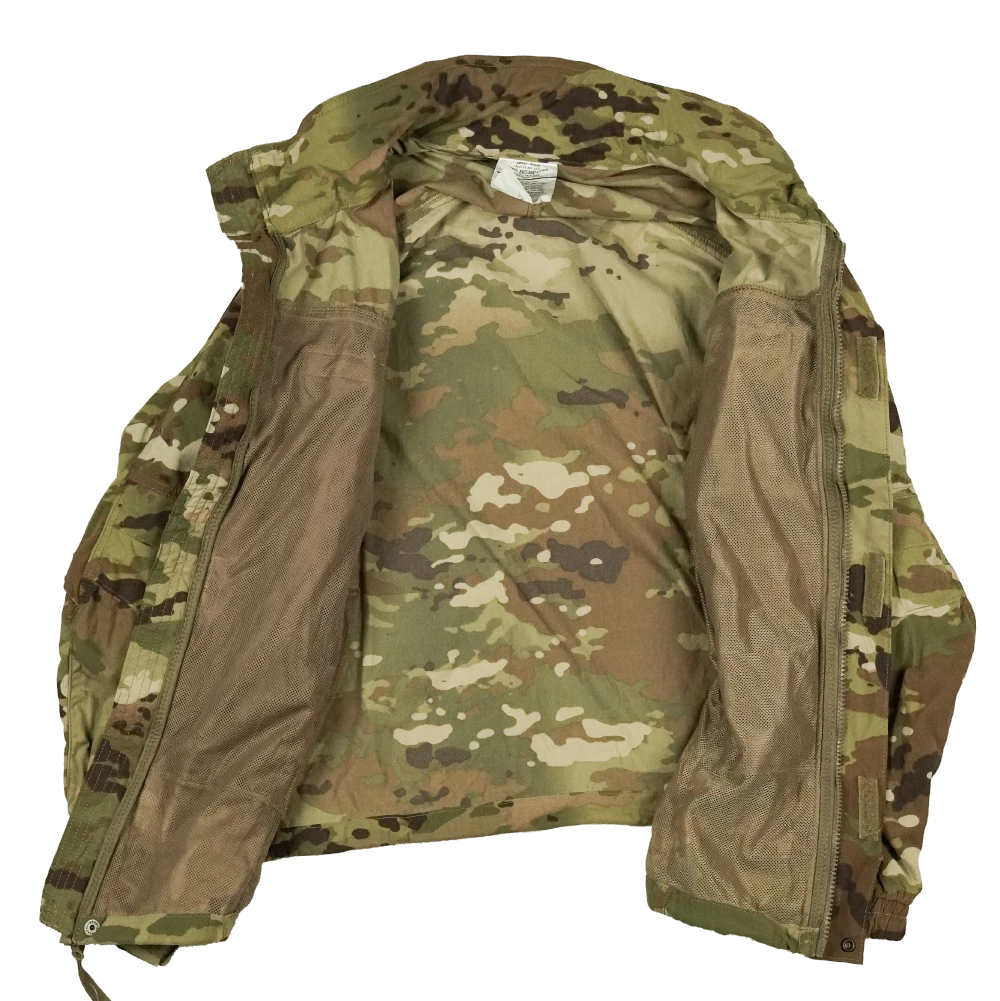 U.S. GI ECWCS Generation III Level 5 softshell jacket. Features a zip front and integrated hood.