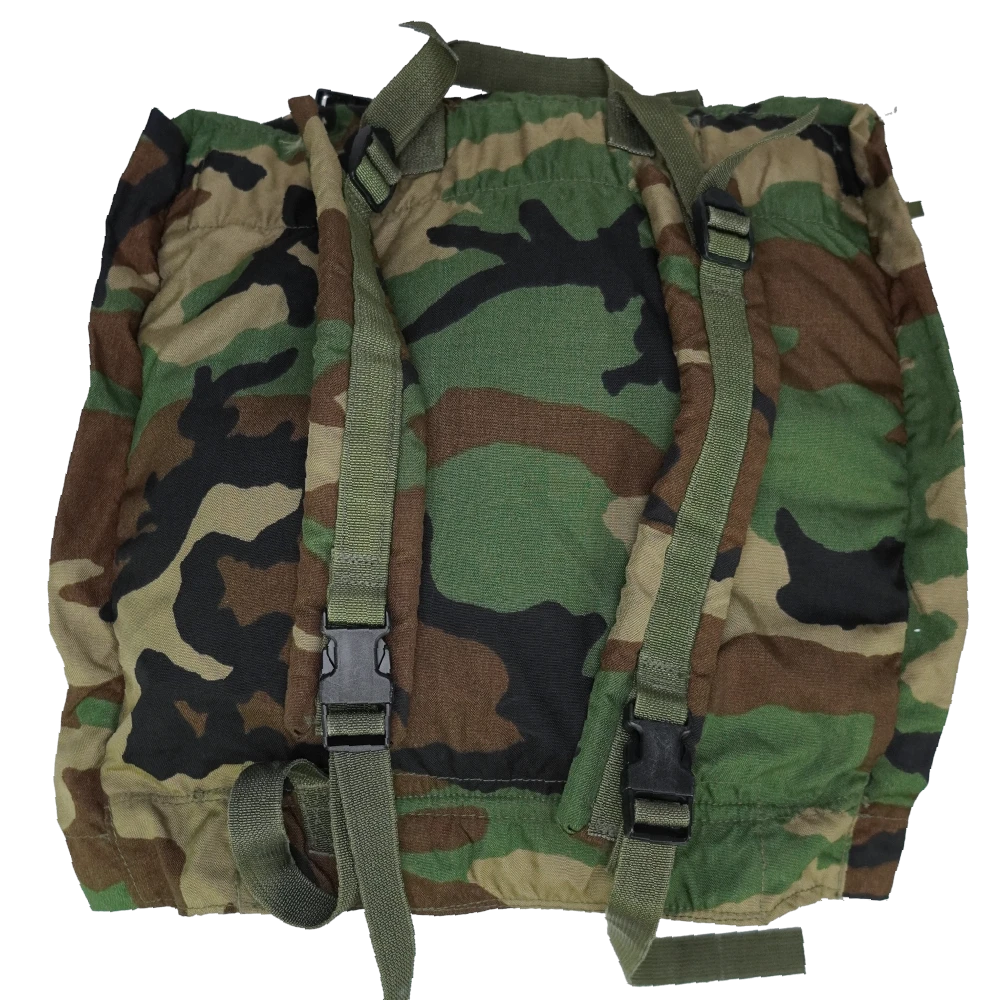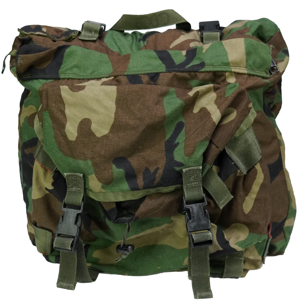 USGI Woodland Combat Patrol Pack in classic woodland camouflage pattern. Standard patrol pack configuration, dated 1987.