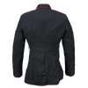 - Red piping along front, collar, cuffs, and shoulders