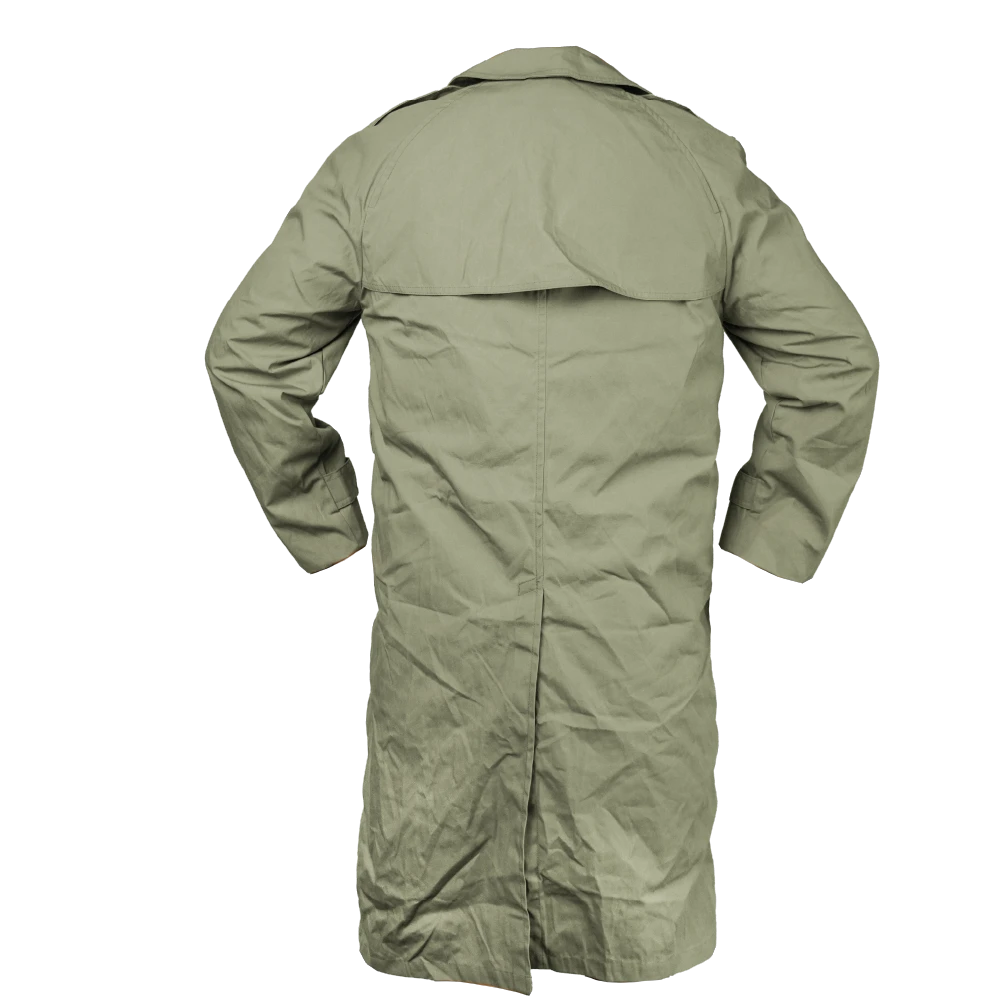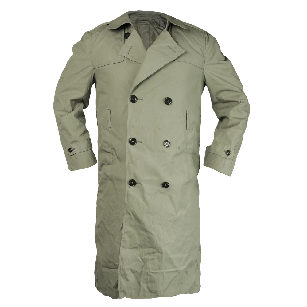 USMC double button all weather coat in grey. Made from a 65% polyester and 35% cotton blend, with a traditional double-breasted front closure.