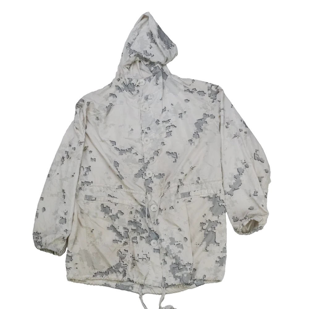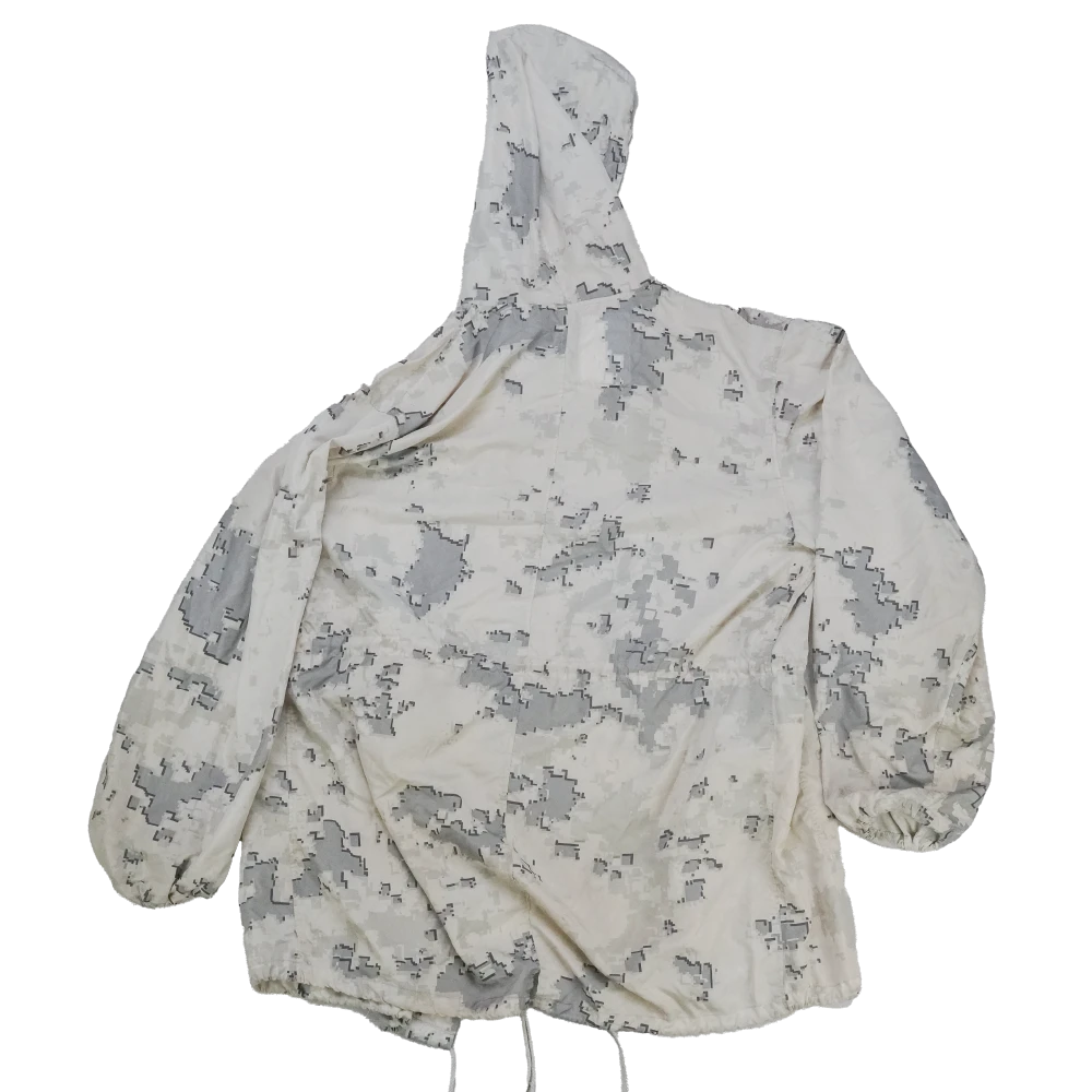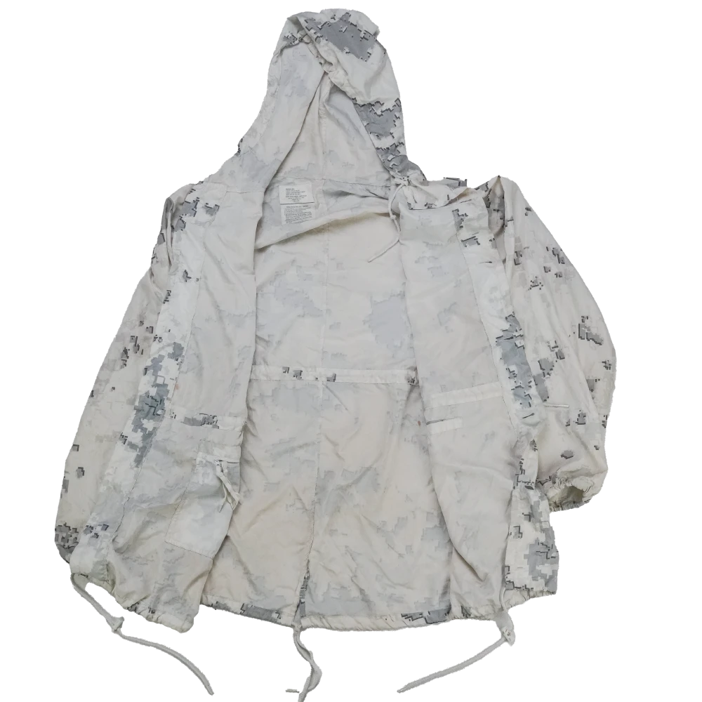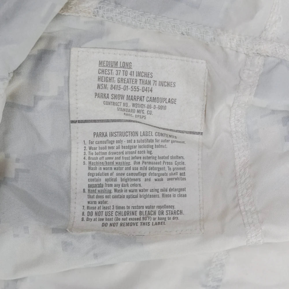 USMC MARPAT snow parka in a medium long size. This is a lightweight outer layer with a long cut and snow camouflage patterning.