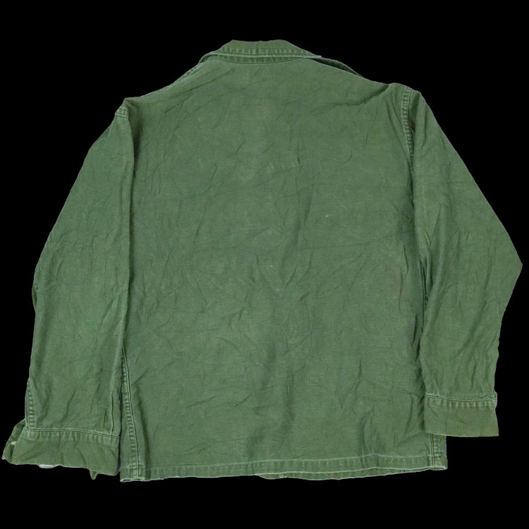 USMC P56 utility shirt in used, fair condition. Features two button-closure chest pockets and a large internal left chest pocket. The shirt is marked with a USMC and EGA (Eagle, Globe, and Anchor) pocket stamp.