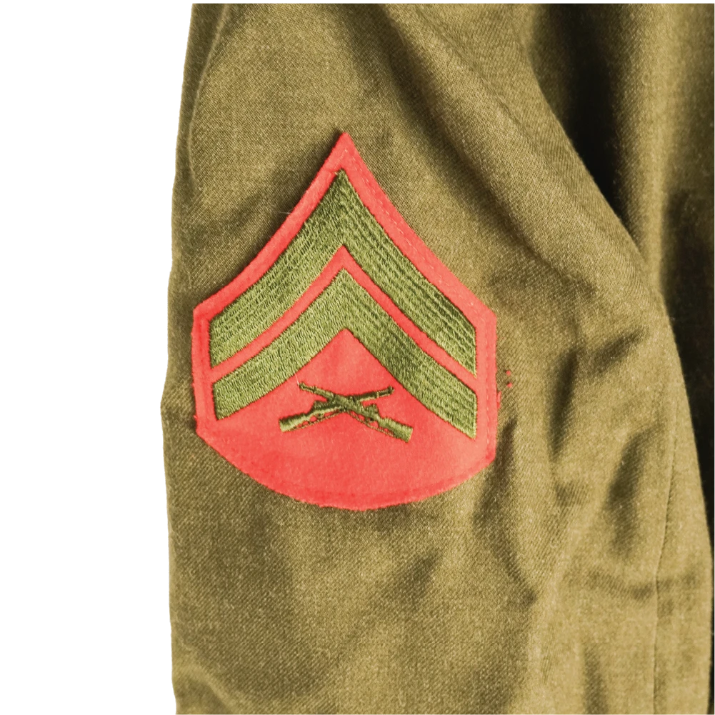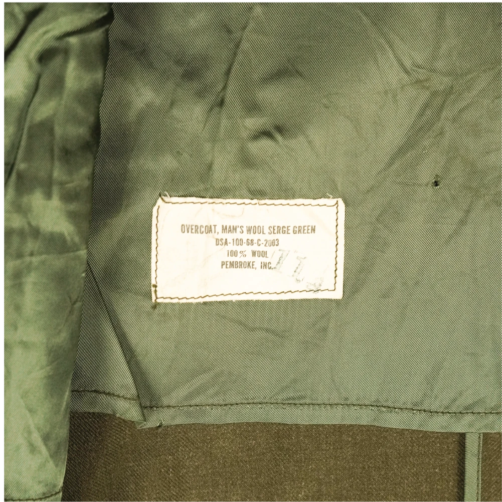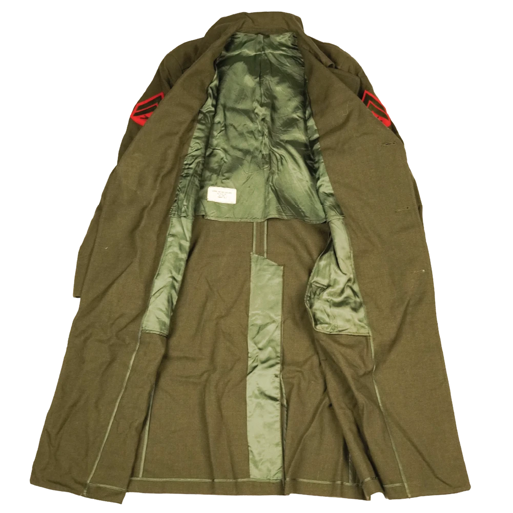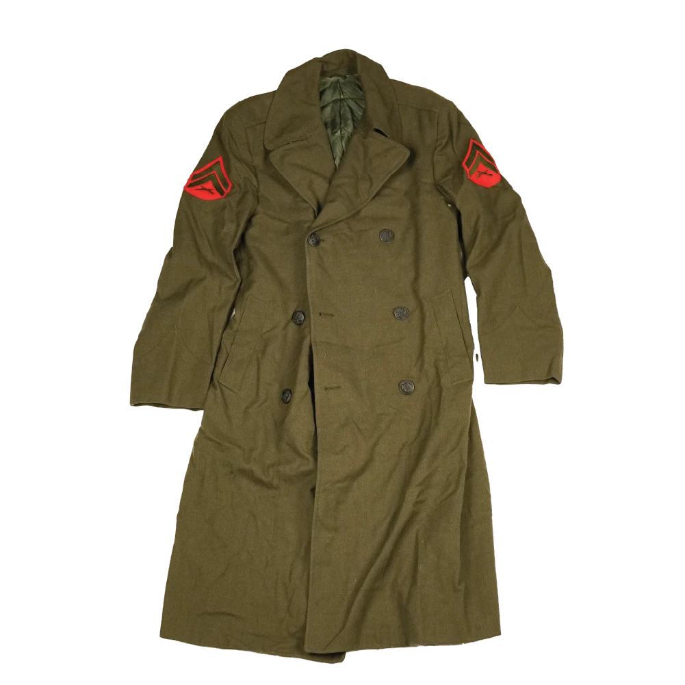 United States Marine Corps wool overcoat in small size. This example dates to 1968 and features Corporal rank insignia.