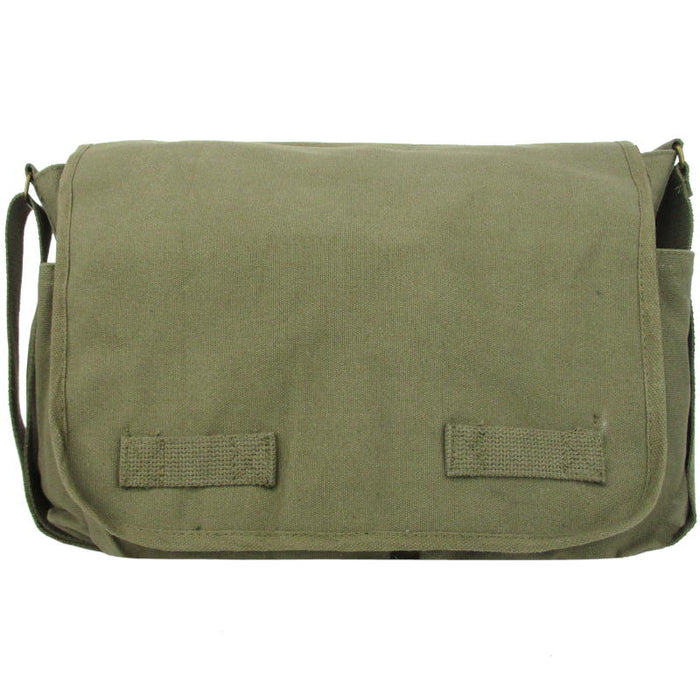 These messenger bags are ideal for student life. One large main compartment with enough room for a laptop and multiple books, you'll store everything you need for a hard day cramming knowledge in. Tucked away inside this main compartment is also a small zippered pouch - perfectly suited for keeping your cellphone or wallet secure. This main compartment and the two front pouches are covered by a large canvas flap with hook & loop strips for easy access. Both of these front pouches are a decent size to fit plenty of spare stationary or a packed lunch in. Each side of the bag has a pouch to keep water bottles in to make sure you keep hydrated. Duck your head through the adjustable strap and rest it on your shoulder and you are away on your daily commute fully prepared - easy!