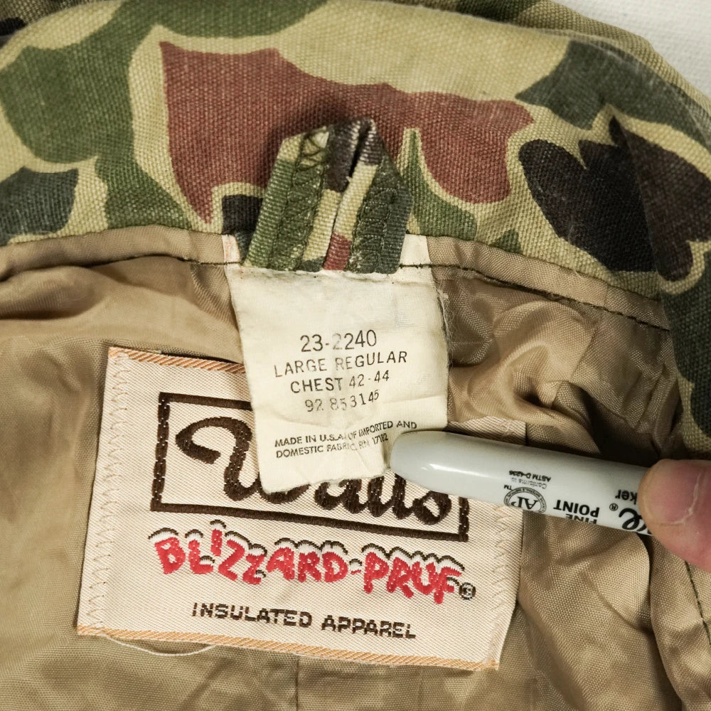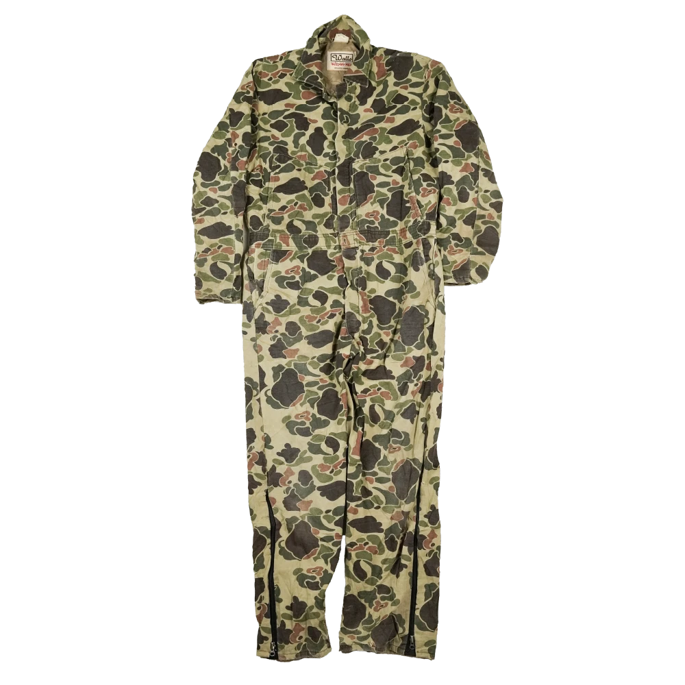 Insulated coveralls by Walls in Duck Hunter camouflage. Heavy-duty construction with a quilted insulated lining, zip-front entry, and an elasticated waist. Made in the USA.