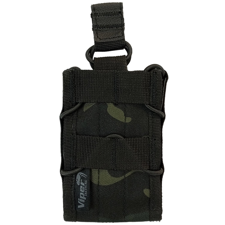 Need to speed up your reload times? These Viper Elite mag pouches will get you back in the fight fast! Open topped with rigid sides, mags are drawn with ease. An adjustable bungee cord with pull tab retains the mag – simply pull it to the side to draw your mag in a flash. Attaches to MOLLE surfaces, ideal for battle belts, vests and packs for extra capacity. Complete with a camo similar to Multicam.