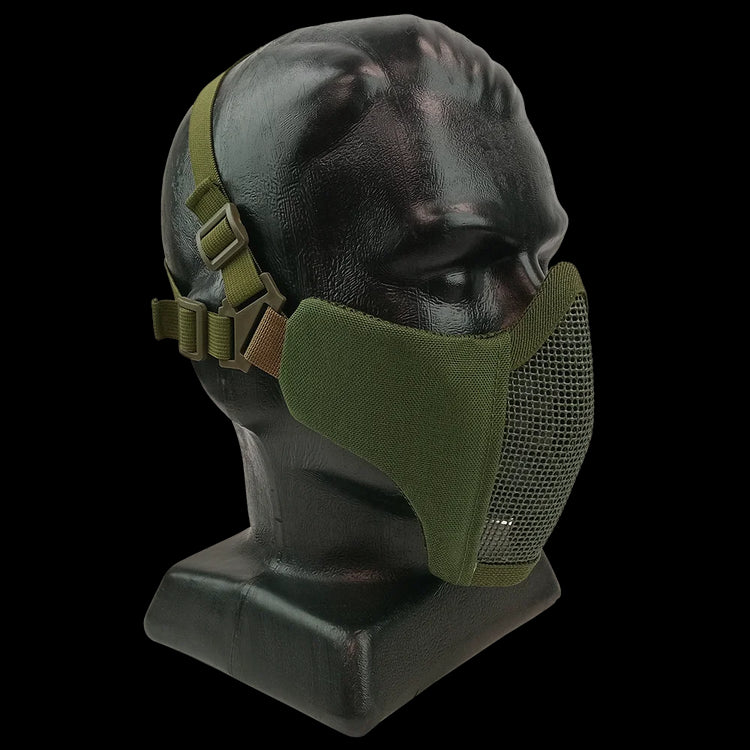 Half-face mesh masks for airsoft are a preferred choice over solid masks for some players, especially those who fog up but like their teeth. The Viper Gen 2 features lightly padded, fabric sides, which conform to the face easier than mesh + provide more side protection.