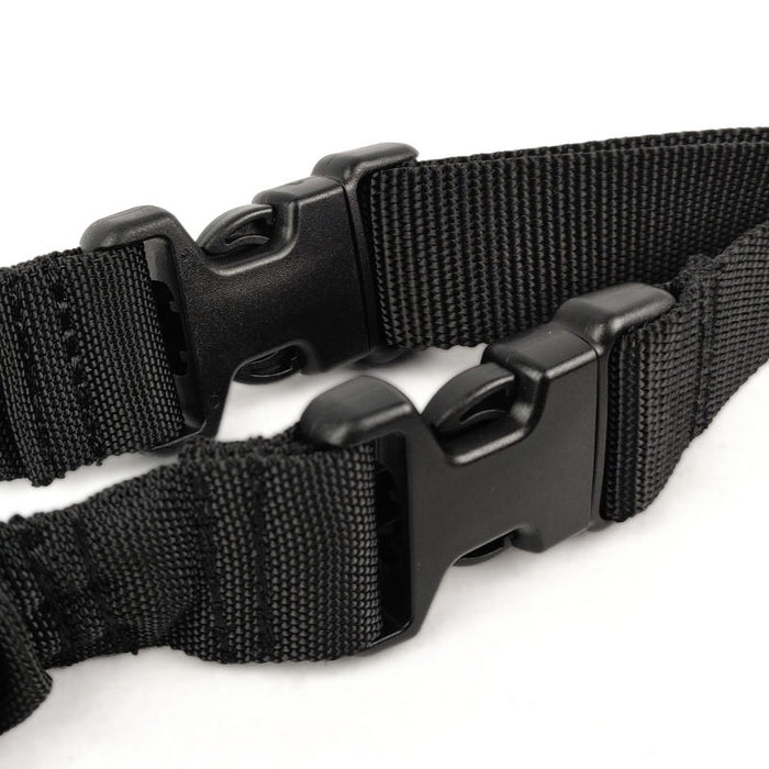 The Single Point Sling from Viper Tactical is designed to be a light weight yet durable option to carry your AEG. Switching between your primary and secondary airsoft weapons is a smooth experience thanks to the strong bungee that absorbs the downward force of the weapon dropping. Three quick release buckles allow quick detachment of the weapon from the sling or the sling from your person. An alloy metal spring hook attaches to the weapon and has a sleeve for protection and concealment.