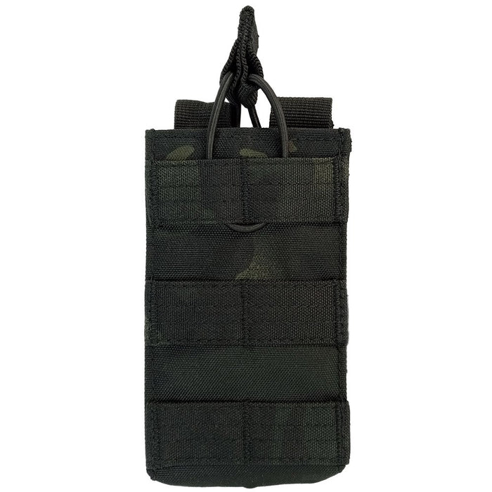 Want something a bit quicker and quieter reloading mags with instead of the ol' hook & loop flaps? These 'single shingle' mag pouches utilise a pull tab and bungee cord to keep retention on the mag but also easy to access. The retention can be adjusted at the rear depending on your mag height but these are generally designed for a single 5.56 mag. Equipped with MOLLE at the rear you can add these to any tactical surface such as 1st line belts, chest rigs, vests or backpacks. The front is also covered in MOLLE so you can add another layer of these pouches or any similar sized pouch.