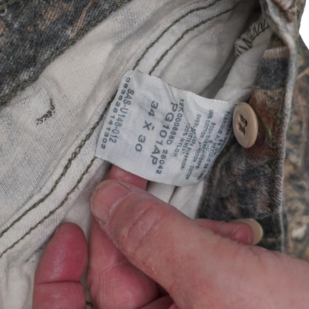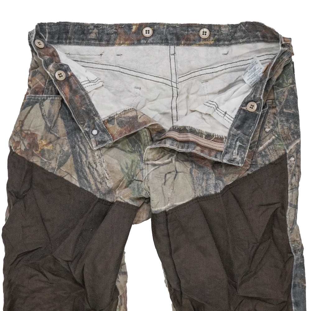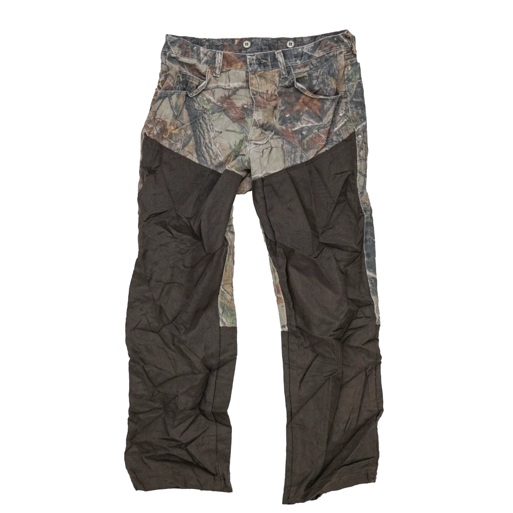 Commercial Wrangler Real Tree Brush Guard trousers. Durable trousers featuring reinforced brush guard panels designed for added protection in high-wear areas.
